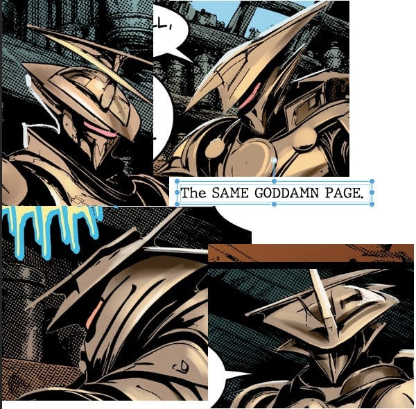 The characters’ clothing is also an issue, as articles change from panel to panel, and helmets never seem to remember which piece should face forward.