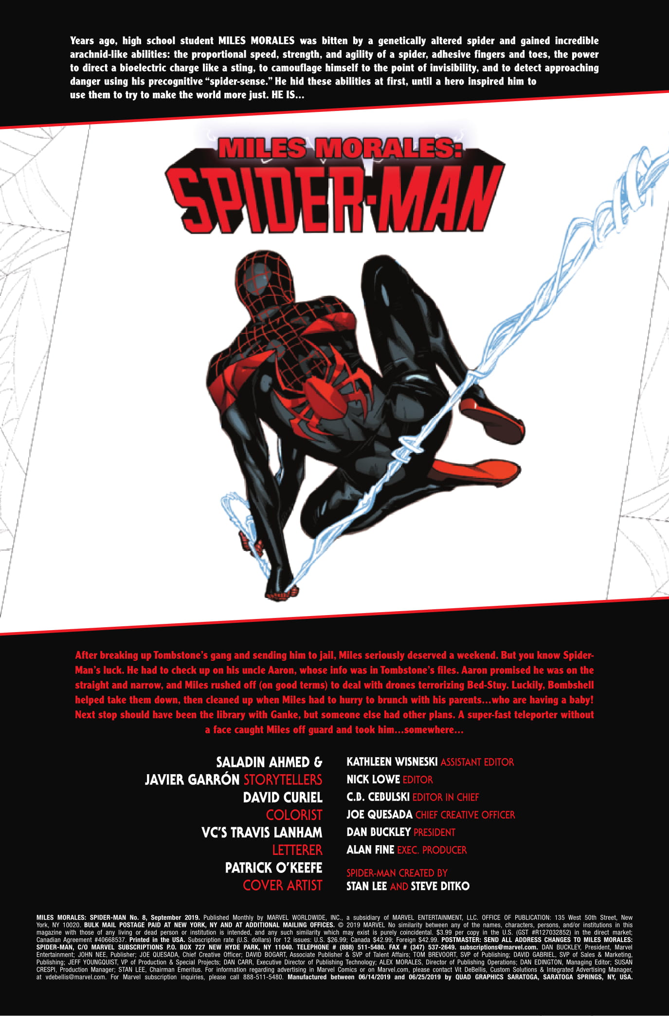 Publisher: MarvelMiles Morales has been TAKEN! Grabbed from the streets by an unknown assailant, bound, tested and observed, like a bug under glass. Who is responsible?! And how far will they push Miles to protect his friends and family? Don’t miss this horrifying new chapter in Miles’ life as his rogues’ gallery continues to grow!