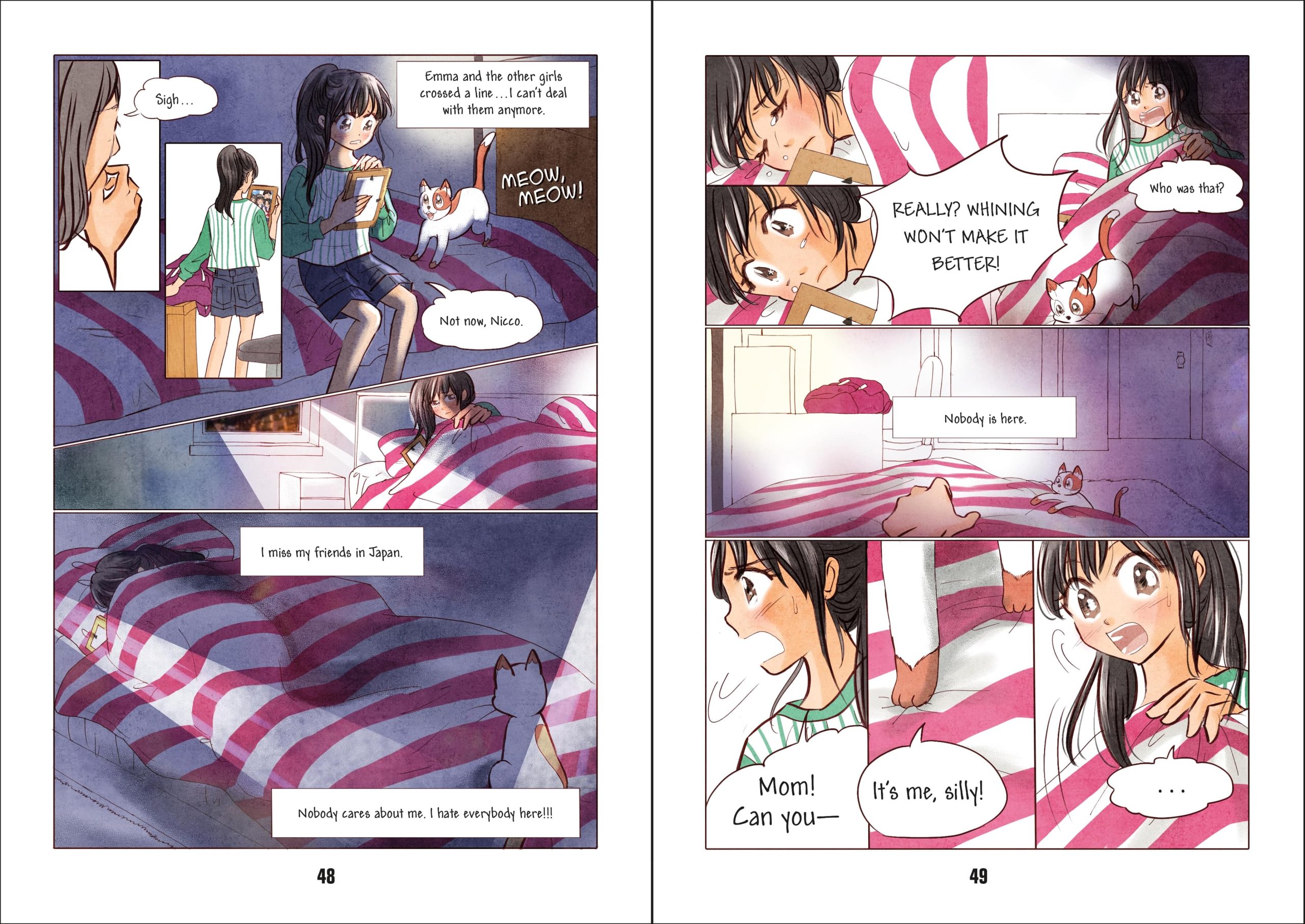 KAPLAN: In addition to human characters, there is also a cat character, Nicco! What goes into designing a character that is not human?