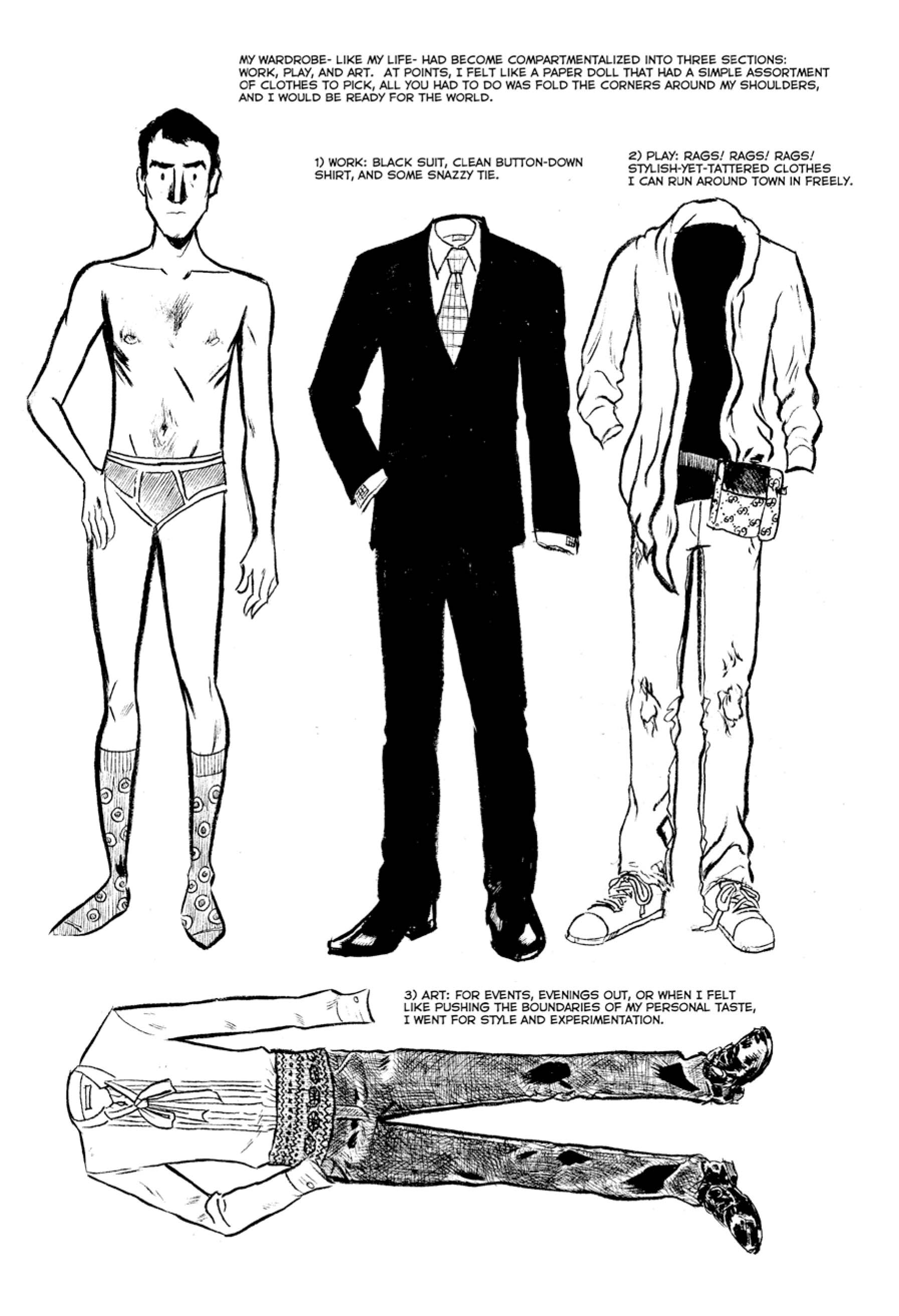 It’s a fast moving but dense coming of age story that’s likely to have legs outside of the comics market. The semi-autobiographical book concerns a young fashionista cum comic nerd’s life changing experience as a retail slave pushing upscale women’s wear to wealthy Beverly Hills dowagers. But while it richly portrays a modern gay twenty-something trying to make it in the big city as he feels his way through the romantic trials of young adulthood; it’s also sure to have universal appeal for anyone who’s ever had to work a day job while trying to pursue a higher creative calling.