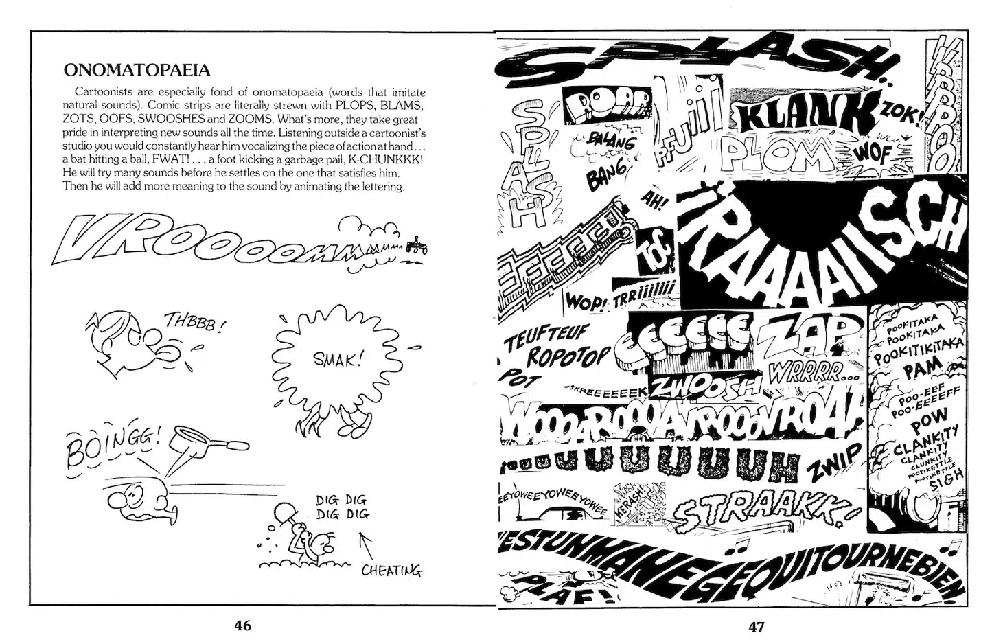 For Mort Walker, creator of the iconic Beetle Bailey, the language of comics is universal. It’s in our road signs and user’s manuals; it’s hidden behind our mischievous expressions, our japes and gripes, our puns and jokes. The Lexicon of Comicana is his madcap attempt to catalog the colorful, motley system of comics, from the types of speech bubbles (“fumetti”) to the shapes of bodies (“morfs”) to the pell-mell lines surrounding a fierce scuffle or trailing behind a sprinter (“blurgits”). There is a guide to identifying comic stereotypes (the tramp by his bindle, the rich man by his top hat and cane), a catalog of “trite and trite again” overdone situations (the desert island, the bed of nails, the psychiatrist and his couch), and a guide to “maladicta,” the sly ways of concealing naughty words in newsprint, called “jarns,” “quimps,” “nittles,” and “grawlixes.”