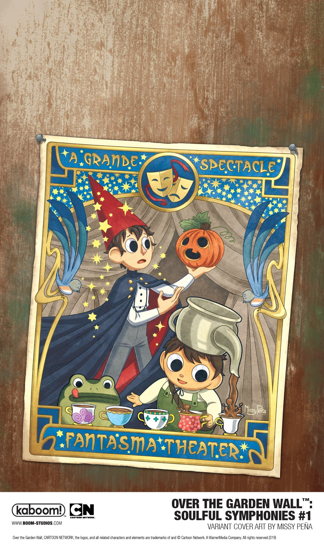 “The thing I liked best about writing this particular Over the Garden Wall story is that it speaks to my inner nerdy theater kid,” Willis said in a statement. “Certain elements of the show remind me of a play – narration, songs, opening and closing title cards like curtains – what better way to celebrate than to put Wirt and Greg and Beatrice in a theatrical setting?”
