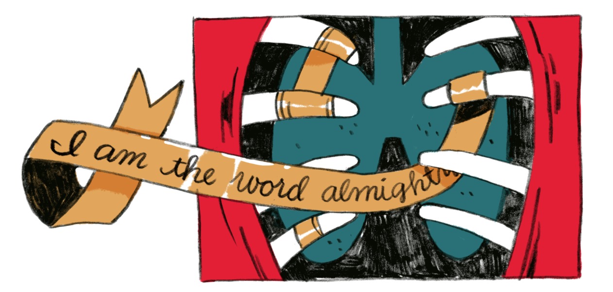 Sookdeo: I mean they’re golden ribbons because in my head it was like the sentence of a lifetime. The golden ribbon was supposed to represent something so beautiful said by somebody that they may not ever say again, so it was a treasure. And it was wrapped around their rib cage for a reason. And it was hard to extract for a reason. The whole idea of it ramping up into actual violence was basically also an escalation of my anger about it. So as it unfolds, I’m also getting more and more angry about plagiarism as I was writing it. It’s very symbolic in a way. But yeah I’m bitter! [laughs]