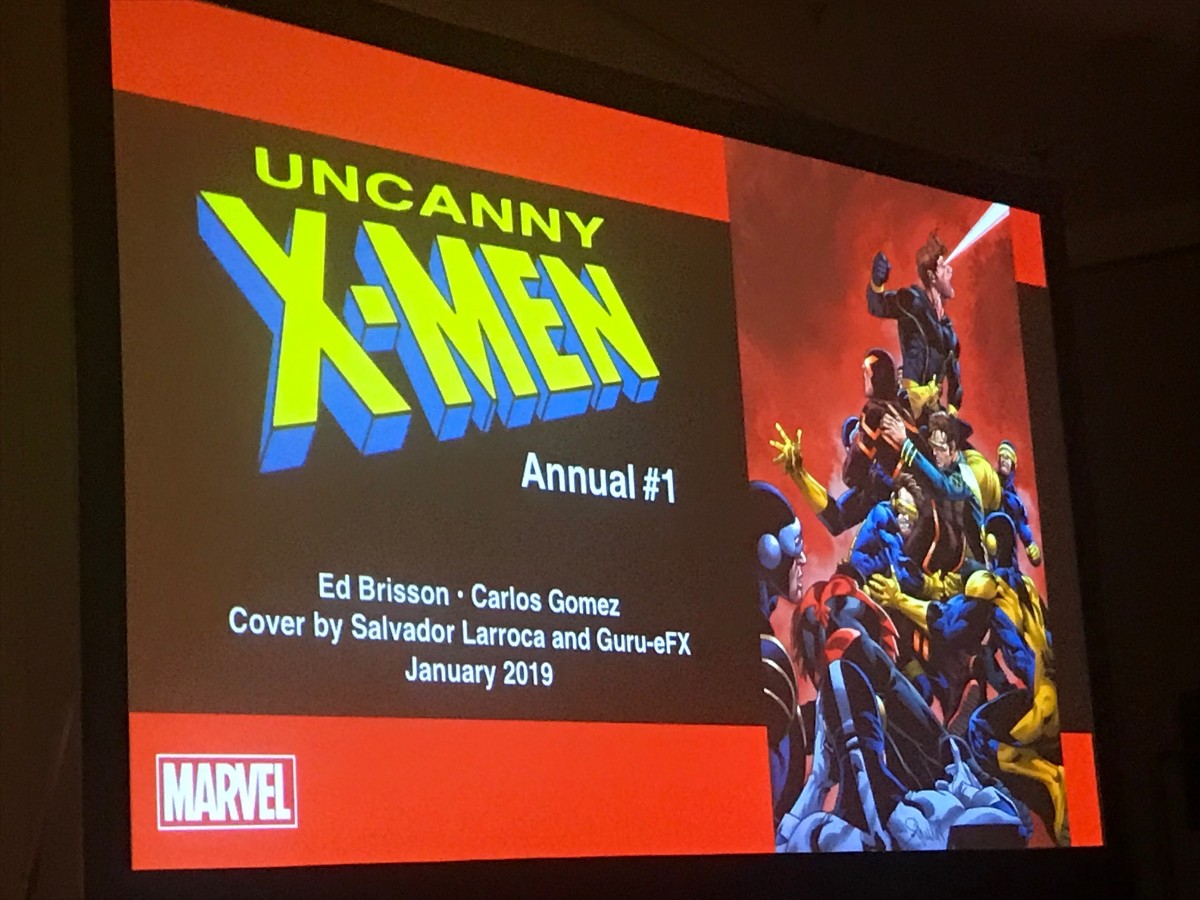 The panel also announced Uncanny X-Men Annual #1 by Ed Brisson and Carlos Gomez, showing a hoarde of Cyclopses (Cyclopsi?) swarming each other.