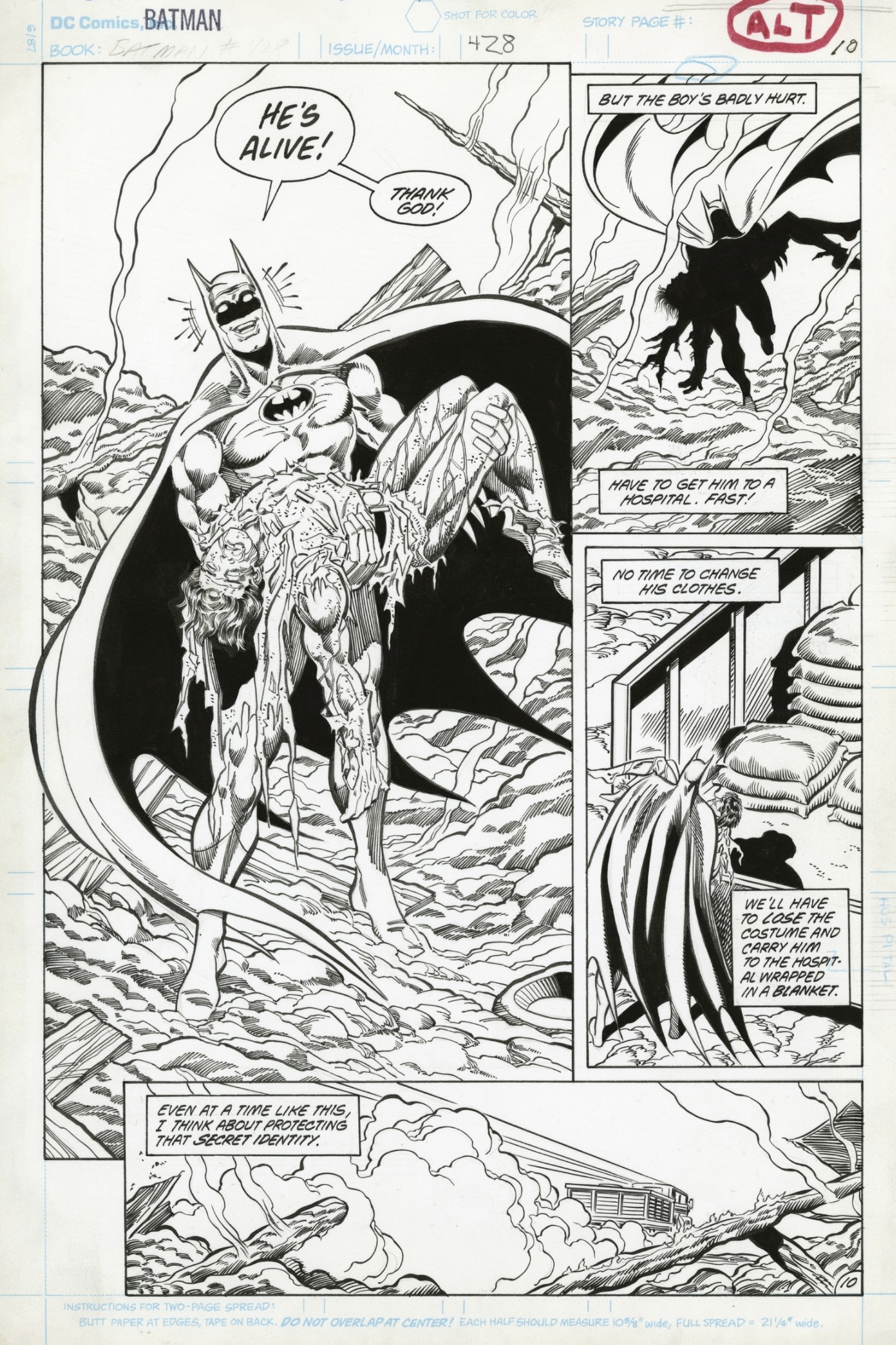 The new ‘fauxsimile’ issue, releasing in December to coincide with the 35th anniversary of the original Batman #428’s release, will include a combination of alternate pages and patch panels from the story’s original creative team – Jim Starlin, Jim Aparo, Mike DeCarlo, Adrienne Roy, and John Costanza. The alternate script and artwork were created back in 1988, in the event that fans voted the other way. One page of the alternate art was used in the pages of 2005’s Batman Annual #25, while the remaining pages remained in the DC vault until a few years ago, when a deluxe edition hardcover of “Batman: A Death in the Family” finally revealed them to fans in full.