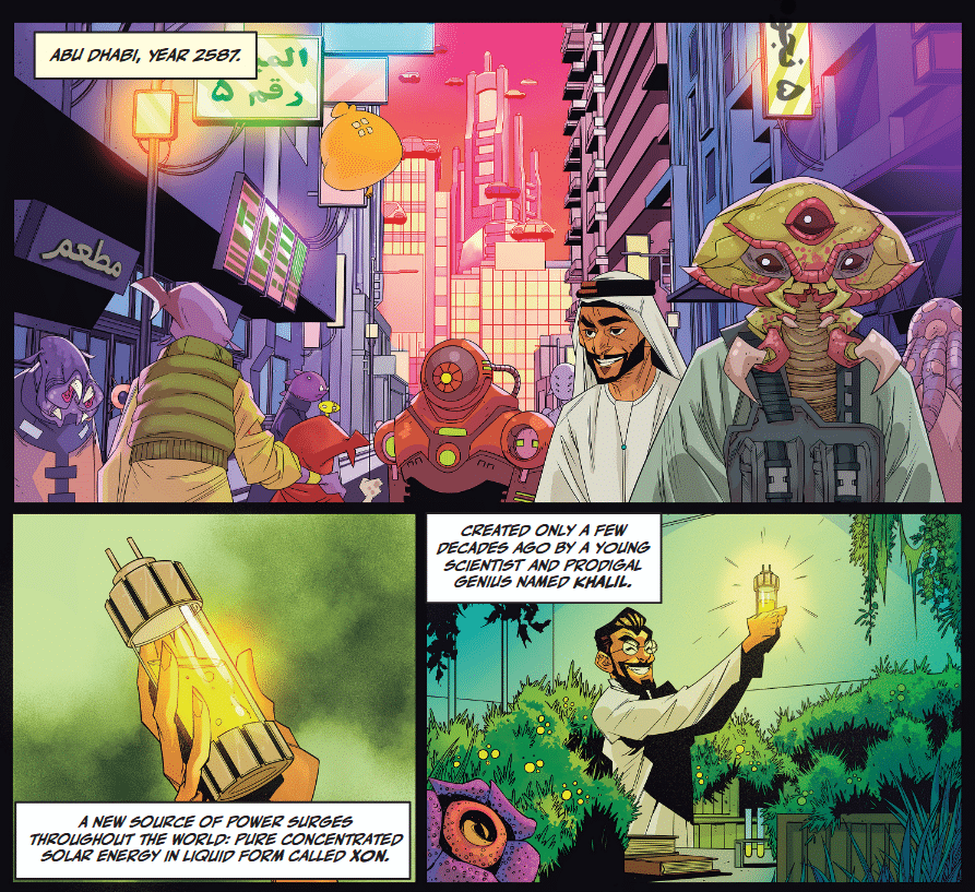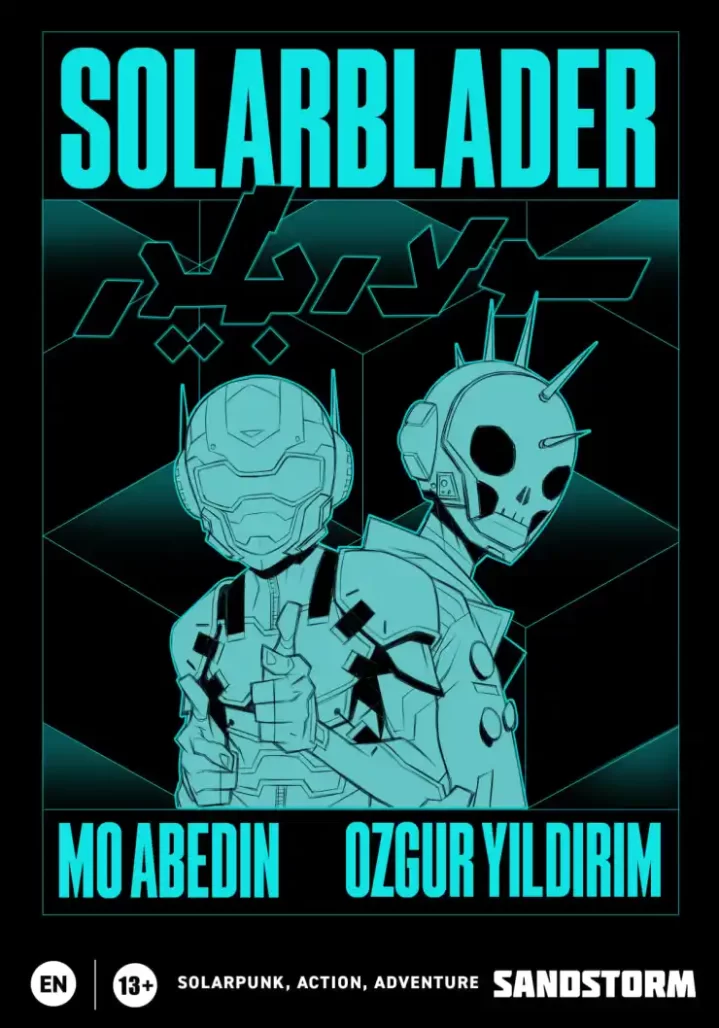 Their most popular books is called Solarblader, written and edited by Mo Abedin (the Editor-in-Chief of Sandstorm Comics) and illustrated by Ozgur Yildirim. It’s been promoted as a solarpunk story set in a future where underground groups host dangerous races and solar power is its own currency.