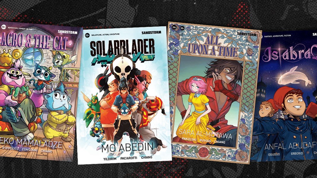 Among the publisher’s other comics are Acro and the Cat and All Upon a Time, both manga-inspired and light-hearted. Created by Teko Mamaladze, Acro follows a professor of fear and phobia that loses his terror-inducing powers after inviting a stray cat into his home. All Upon a Time, written by Sara Al-Mutawa and illustrated by Lucjan Pakulski, is a riff on classic fairy tale tropes. A villain kidnaps the wrong royal subject and then lives to regret it as his prisoner is more trouble than he bargained for.
