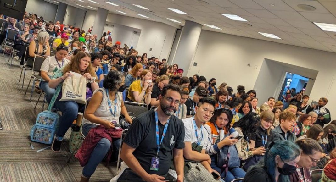 After half an hour of moderated questions, the floor opened up to questions from the audience. When asked what they wanted young readers to see in fifteen years, Sbrana stated, “I want to be able to walk into a bookstore and see books about people who look like me.” She credited the diversity in romantasy to the popularity of the genre on social media and the rise of booktok and bookstagram for showing publishers what people really want to buy, and are buying, in droves.The large audience cheered. O’Riley, who is an independent author, wanted to see more support for indie authors in traditional bookstores. Shields wants to see more stories about identities evolving in long-term relationships. Dominguez said, “more diversity in storytelling.”
