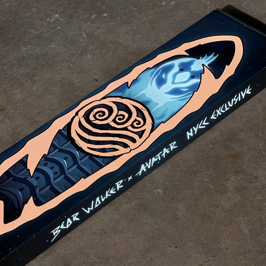 AVATAR: THE LAST AIRBENDER COLLECTORS EDITION CARVED KOIZILLA DECK ($325) – This NYCC 2025 exclusive Bear Walker x Avatar: The Last Airbender 20th Anniversary cruiser deck is handcrafted in the USA and utilizes artwork in collaboration with Bear Walker and Nickelodeon. This NYCC event exclusive features a print of the Ocean Spirit on the back. Each deck has a numbered, holographic Certificate of Authenticity card, and premium packaging. Edition size of 100.