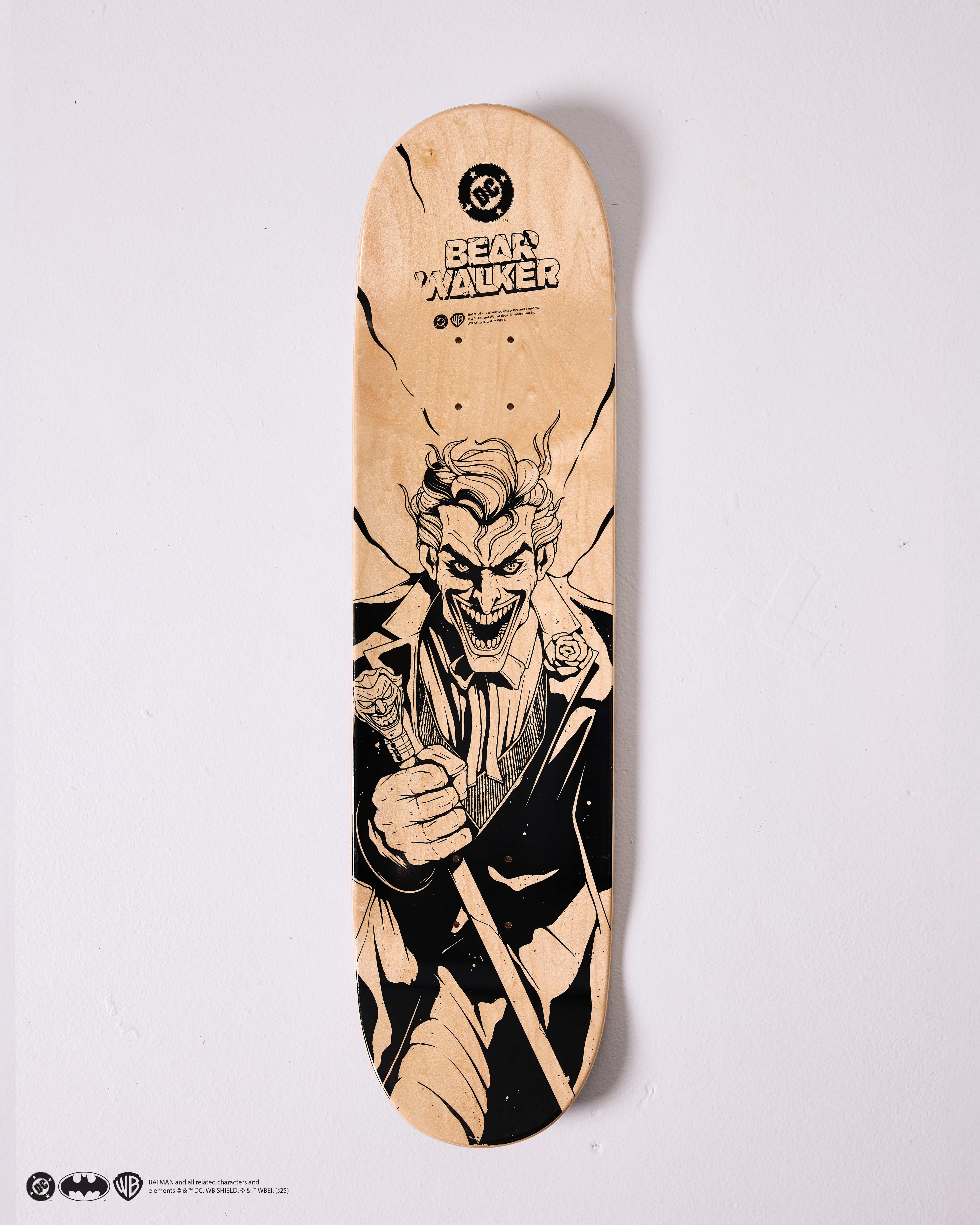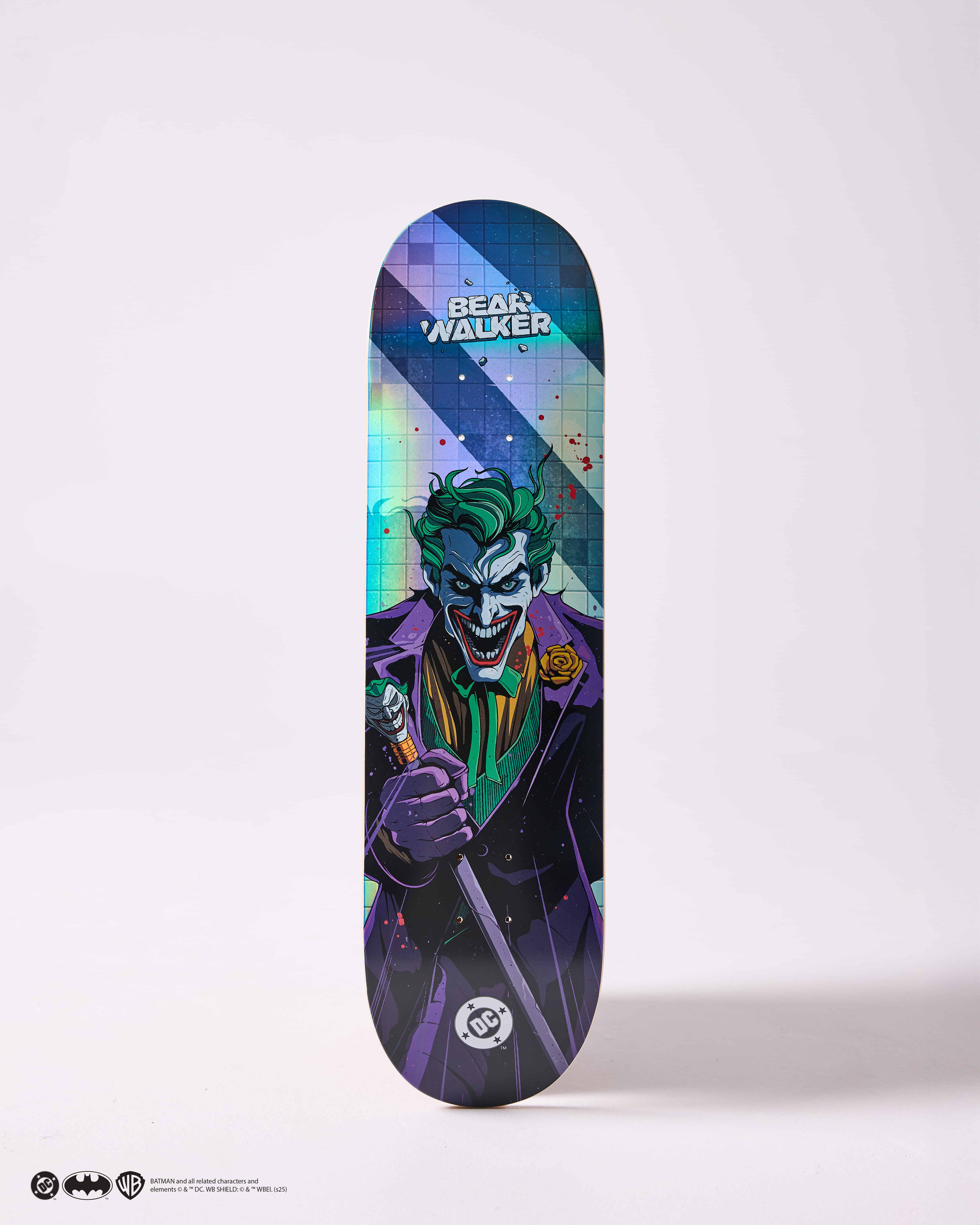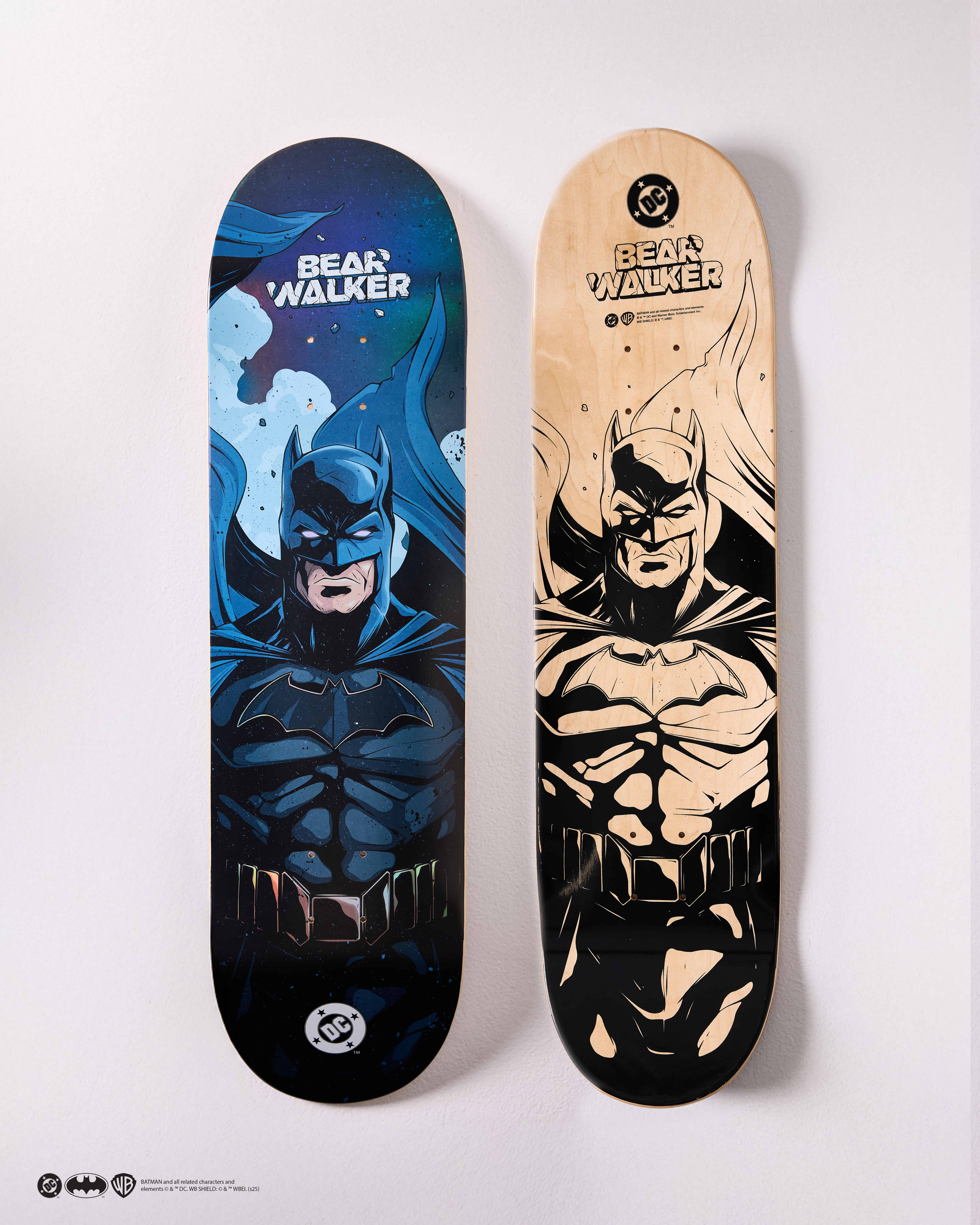 Meanwhile, the DC Comics series includes four boards themed around iconic villains and heroes: Batman, the Joker, Mr. Freeze, and Bane. Each deck displays a monochrome outline of the character on the top side, contrasted by a vibrant, full-color illustration on the bottom, enhanced with an iridescent finish. All retail for $96.