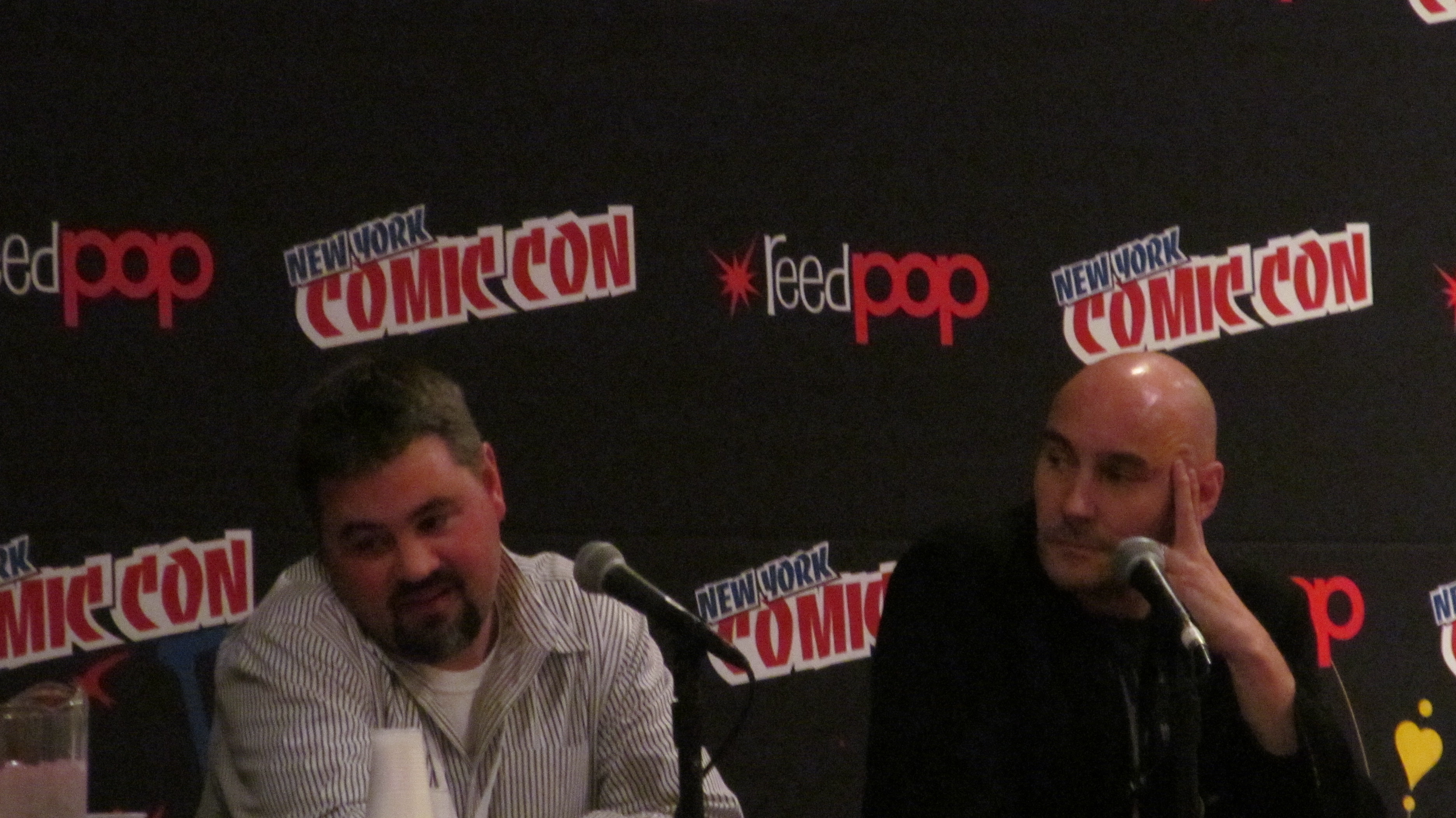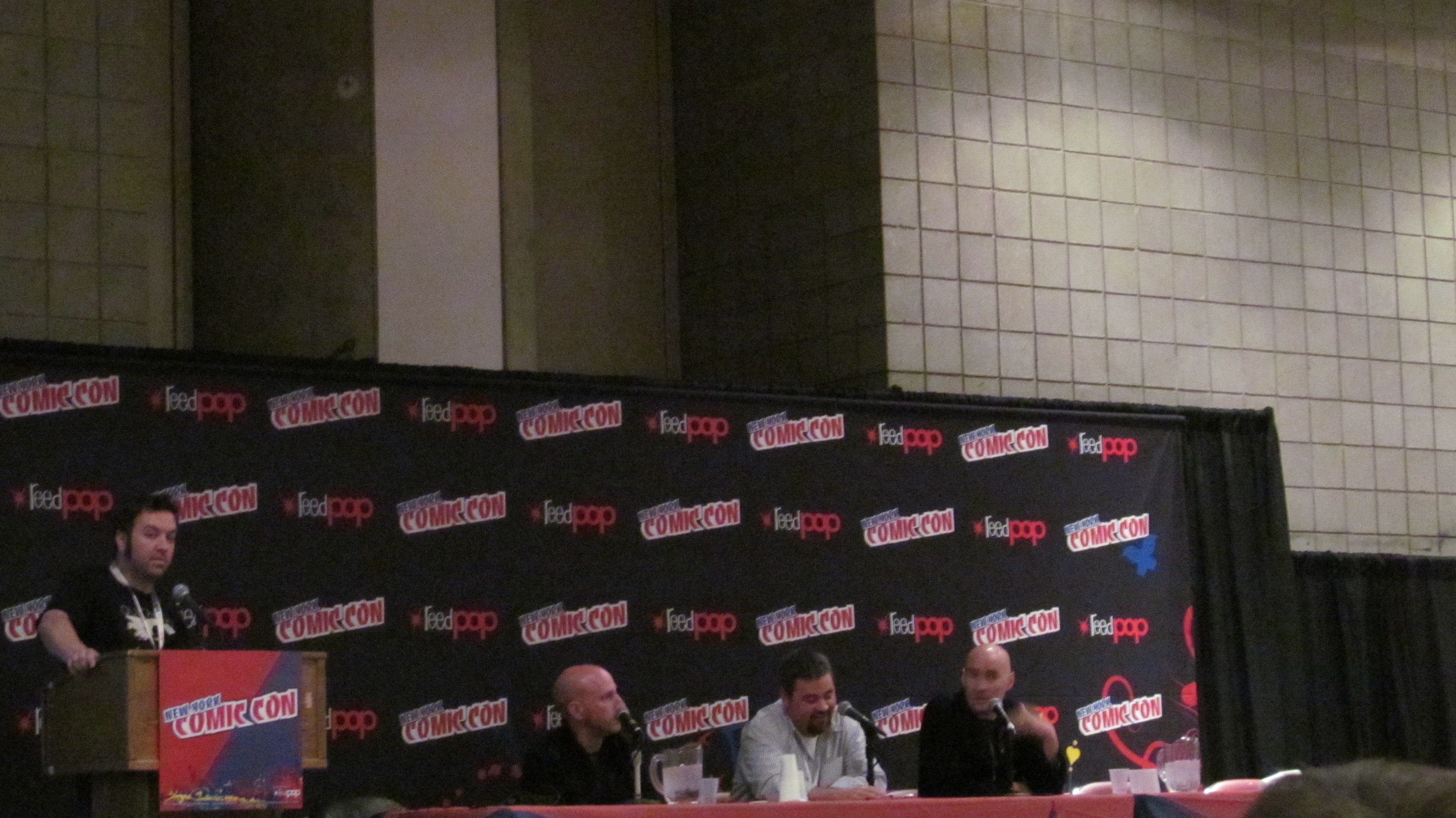 The atmosphere waiting in line for “The Writer’s Room” panel was highly charged. Any one of these comics writers garners a massive following, but putting them together was like some kind of nexus of writing mystique. All the better if you happened to be a fan of all three, like many practically jumping up and down waiting for a prized seat near the stage. Usually Grant Morrison alone is enough to create a magical atmosphere for comics fans, but here he was in fine company and part of a conversation rather than the obvious center of attention.