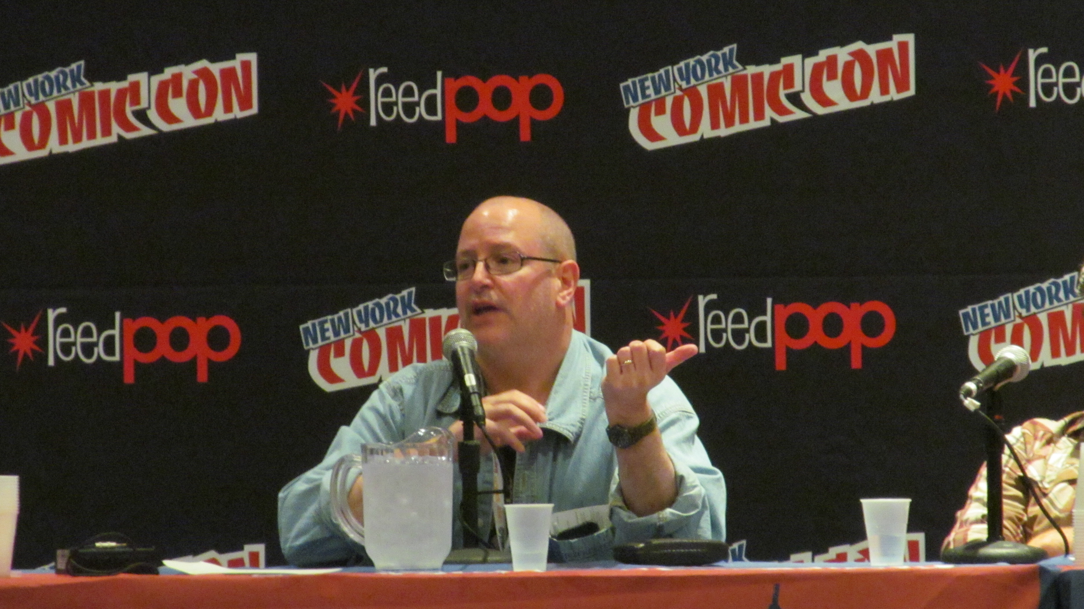 The informational session from the panelists was brief, intentionally, to allow plenty of time for Q and A. Now that Hellboy is “dead”, one fan asked, is his “fate sealed?”. Mignola not only answered the question but gave a rough outline of the first four issues of the upcoming series. “There’s a whole mess that goes on in Hell”, he said reassuringly. Firstly, we’ll see our hero “settling in to Hell”, he explained, and some of this will involve “resolving” the “predestination” issue inherent to Hellboy’s persona. Unfortunately pancake-eating will have nothing to do with this. Following this mini arc, the series will devolve into a sequence of fairly self-contained single issue stories where Hellboy has “adventures around Hell”. Mignola explained that he is consciously resisting building a single epic, heroic arc for this storyline. His “first priority”, he said, is to make these issues “good” and not to simply leave us “hanging” to keep us reading each issue. His focus on the series now is personal and intense. After 7 years away from the series, he said “now that I’m back, I just want to draw the comic”. Getting down to business has taken Mignola, and his character some unusual places.