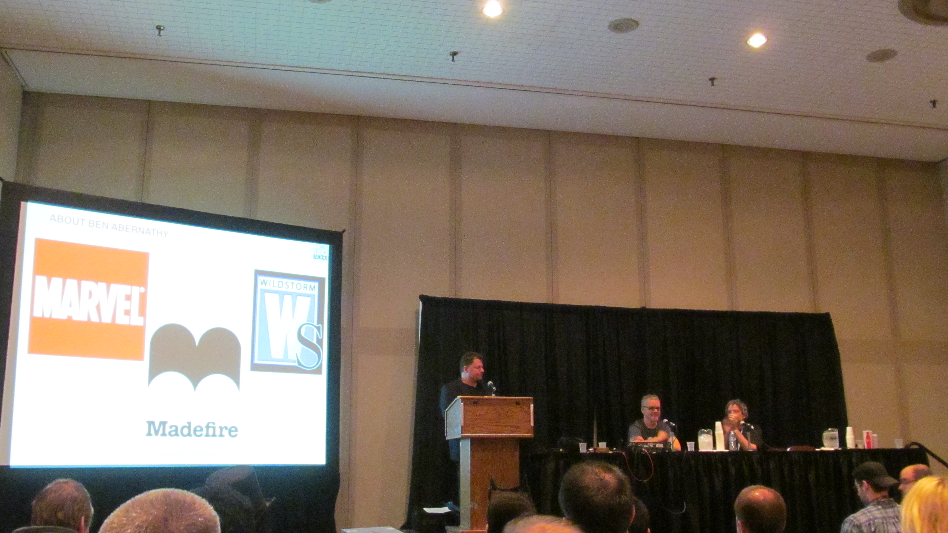 The panelists were all business and spoke in a direct way about their experiences and lessons learned, and brought their respective assets to the table including marketing knowledge and the trends of success over time. Scott Allie combined the unique qualities of an experienced comics writer and editor, and one who continues to write on his own projects while steering Darkhorse in its successes. Allie was careful to point out that he’s not the first of his kind. Other writer-editor combos who have inspired him were Archie Goodwin, Roy Thomas, and Harvey Kurtzman to name a few. Being able to “think like an editor” when examining your writing is worth its weight in gold, he suggested. Abernathy, speaking about Madefire flipped the flow of the equation and said that he preferred to see creators linked to publishing so that they could bring the creator’s perspective, as well as their instincts as fans regarding what they would like to see produced.