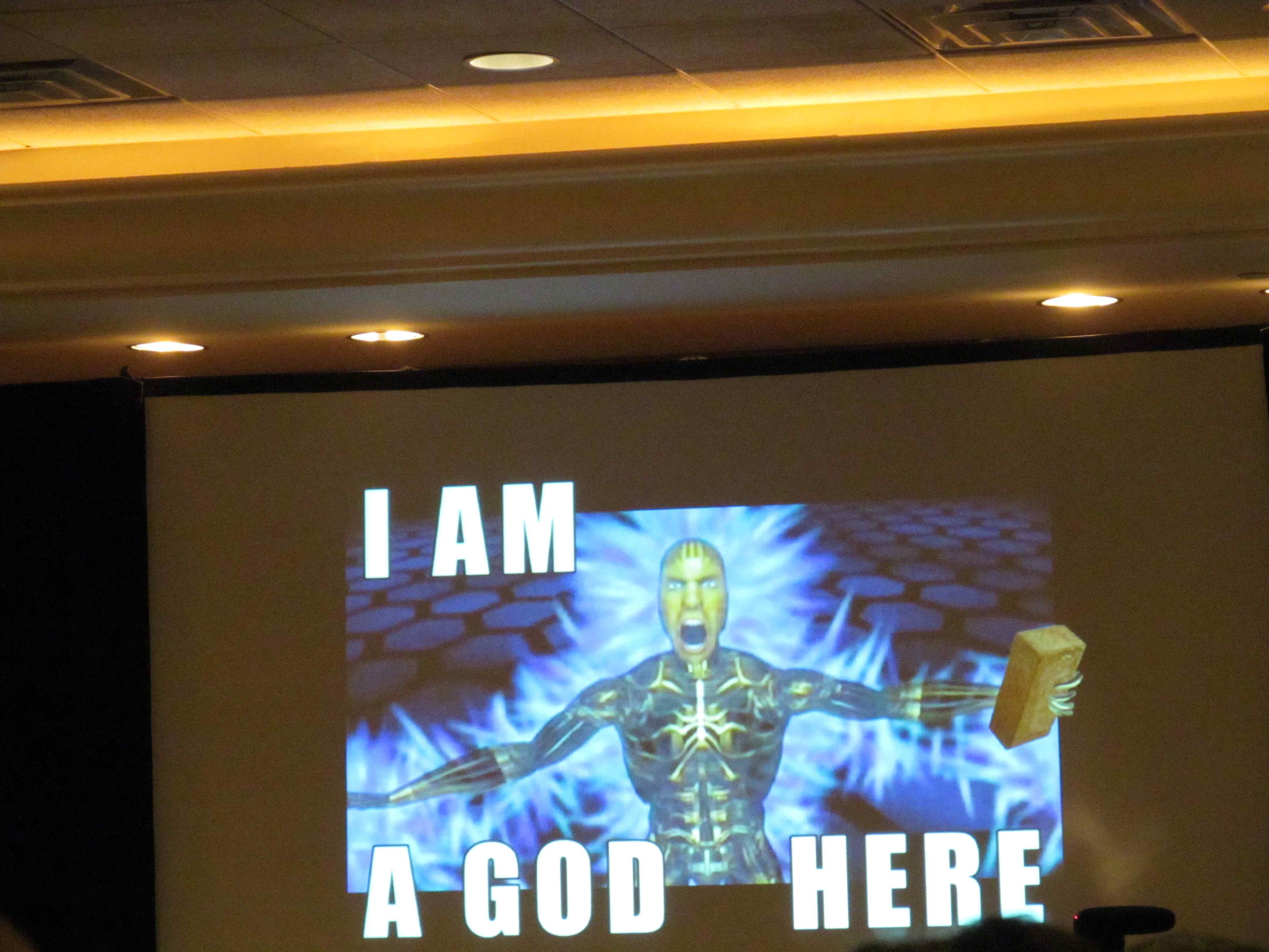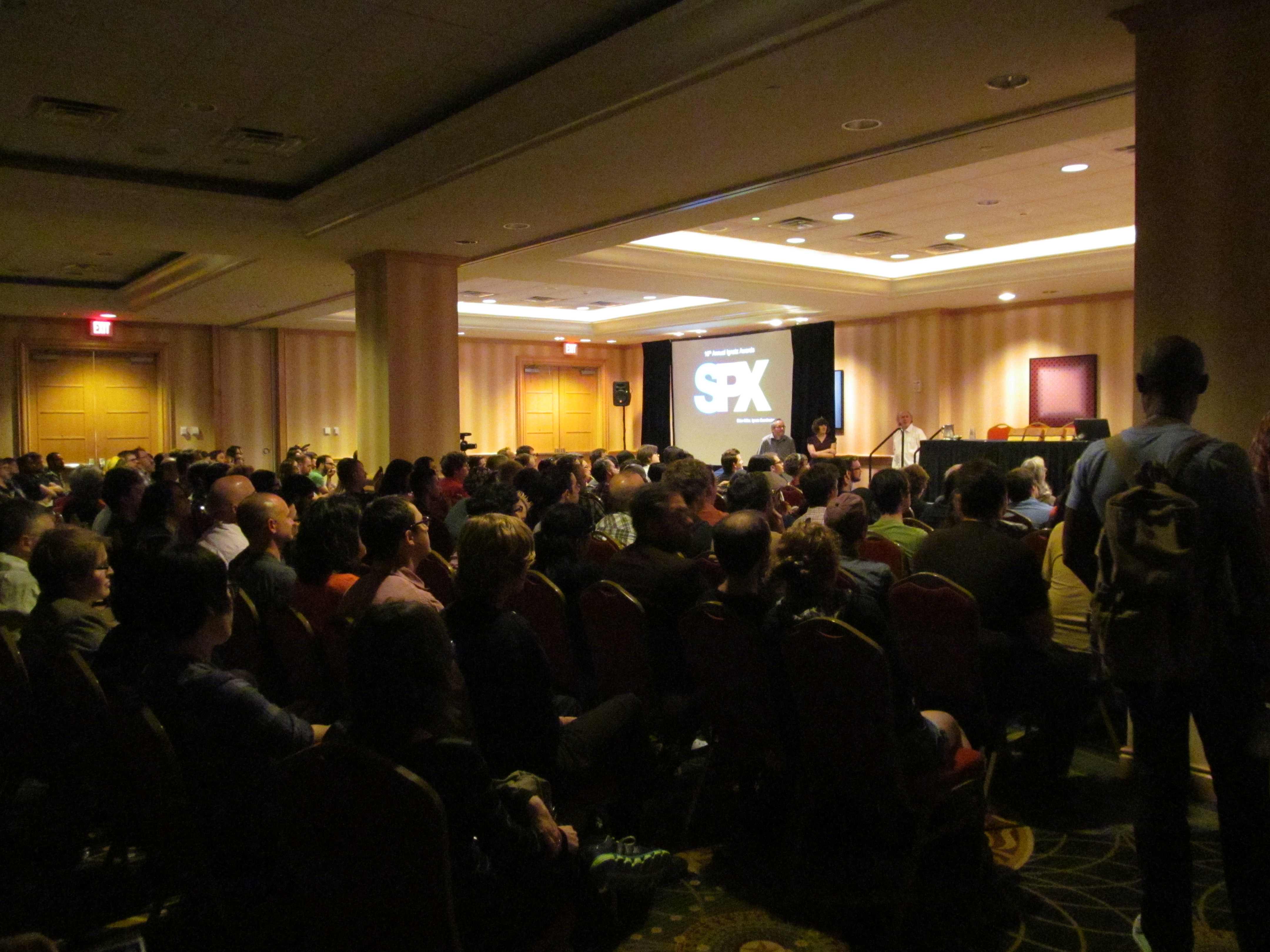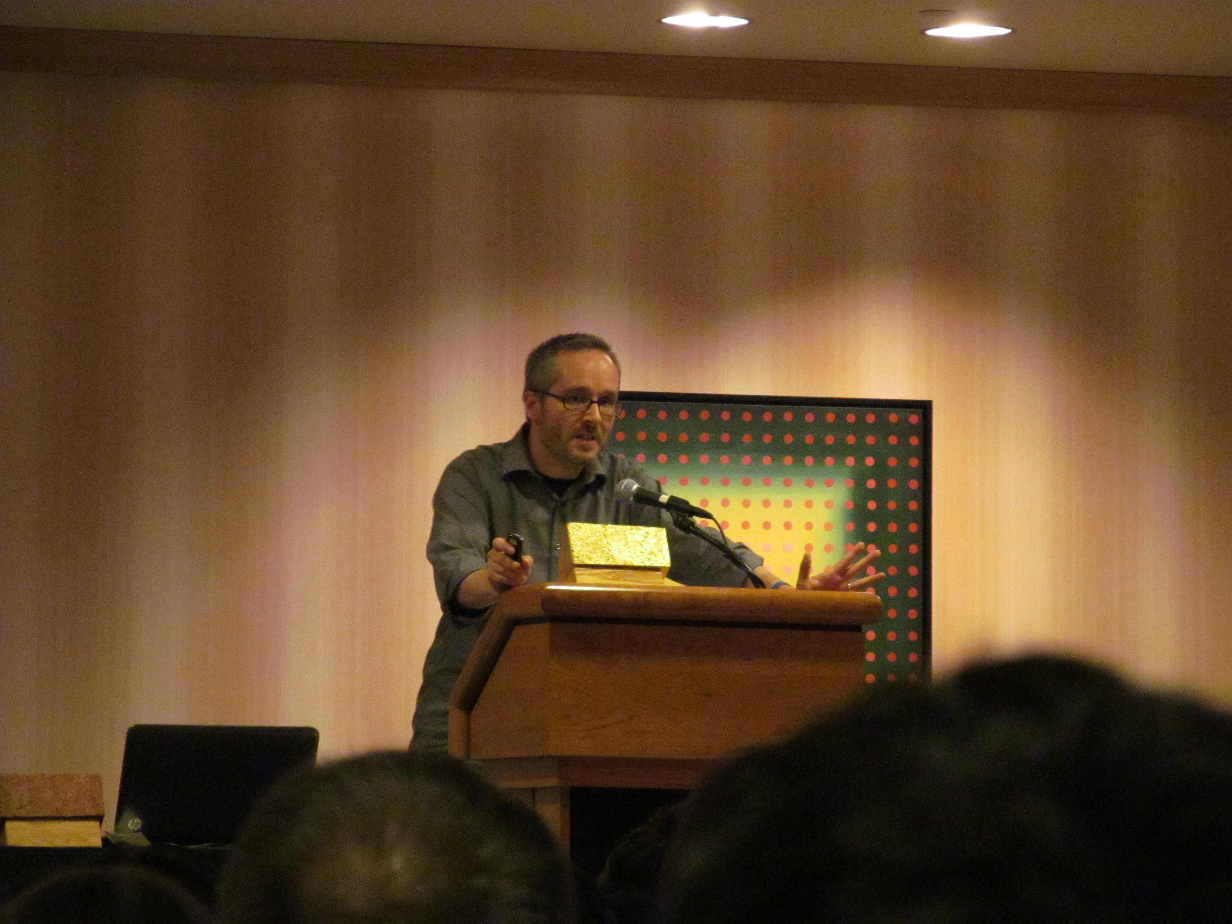 The Ignatz Awards are known for their quick-fire pace and sense of humor but that doesn’t mean they downplay the often very personal extremes indie comics creators face in pursuit of publication. Jerzy Drozd acted as MC of the 2012 awards and crammed a lengthy shopping list of emotional highs and lows typical of comics production into a few brief moments of reflection. The circumstances he listed as typical were typical enough to be universal and recognizable to the audience. Comics creators work full-time jobs, Drozd said, jeopardize friendships and health, and give 5 years of their life and soul to a project, whose demands are immediately forgiven when a proejct finally reaches publication. Misunderstood by friends and family, the work often goes unread and “thrown in the trunk of a car”. Drozd’s fast-talking narrative reached its crescendo with a visual aid, a slide declaring “I AM GOD HERE” at SPX, a voice of triumph for professionals given one night, at least, on which to be understood. Drozd attested to his experience teaching comics that indie comics are “5 years ahead of the comics curve”, because they continue to “tell a story with singular vision” in a field full of “courageous people”. Drozd honored not just the Ignatz winners or nominees in his statement, but all the attendees engaged in the production of comics in many forms.