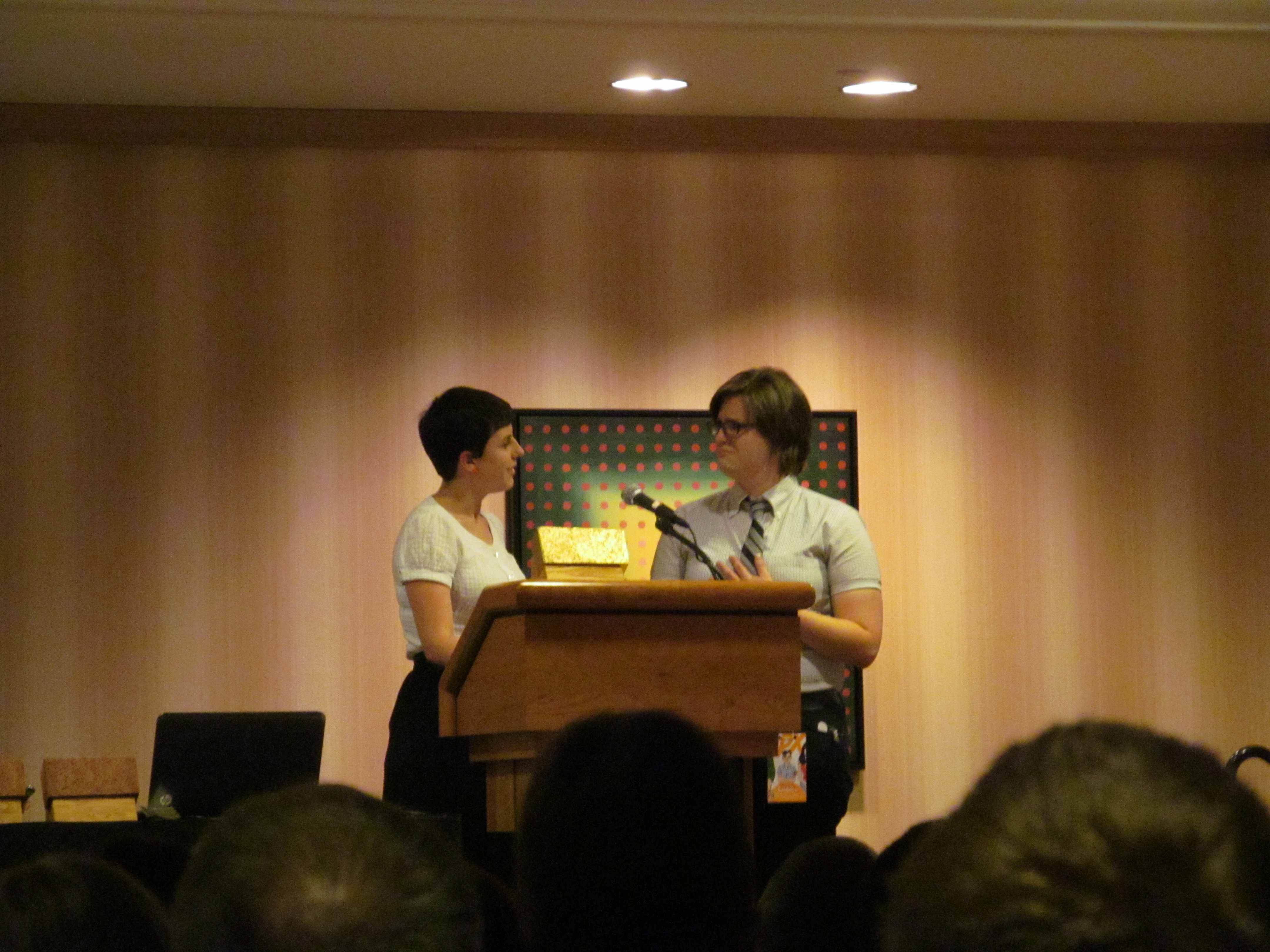 The award for “Outstanding Online Comic” was presented by Ashley Quigg and Kasey Van Hise, and it went to SUPERMUTANT MAGIC ACADEMY by Jillian Tamaki, another win that prompted a great deal of affirmation from the floor.