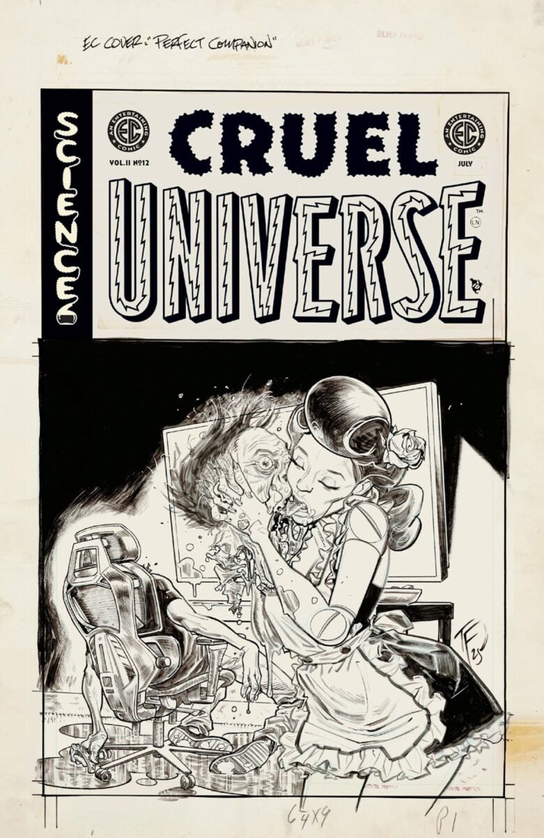 At the apex of the gaping maw of the void that looms over our final issue (for now): Eisner Award–winning superstar Greg Smallwood (The Human Target, Moon Knight) writes and illustrates his first cataclysmic cosmic contribution to the CRUEL UNIVERSE canon! Then: Irradiated writers Melissa Flores (Power Rangers Prime) and Ann Nocenti (Daredevil) join atomically annihilated artists Daniel Gete (Skin Police) and Jordi Tarragona (Hal Jordan & The Green Lantern Corps) to place their bets on heat death or big freeze as the galaxy prepares to collapse inward on itself. Here at EC Comics, we say . . . why not both?!