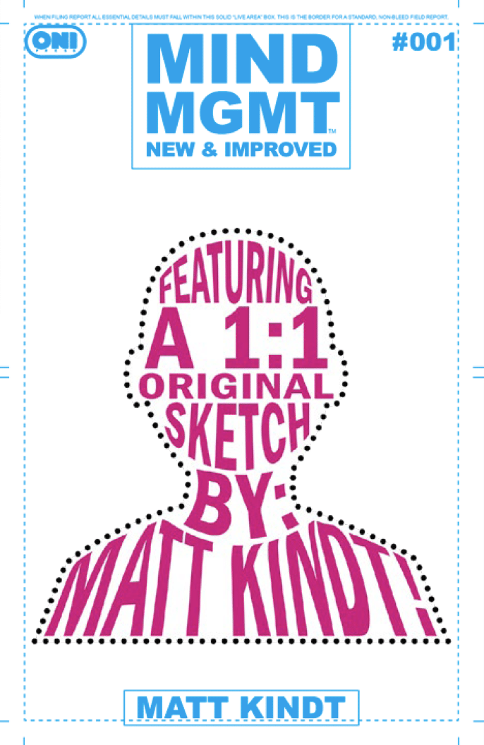 RETAILERS, PLEASE NOTE: EACH ISSUE OF MIND MGMT: NEW & IMPROVED WILL BE MANUFACTURED ON A UNIQUE, UNCOATED PAPER STOCK SPECIFICALLY SELECTED TO MIMIC THE WEIGHT AND TEXTURE OF THE ORIGINAL MIND MGMT SERIES