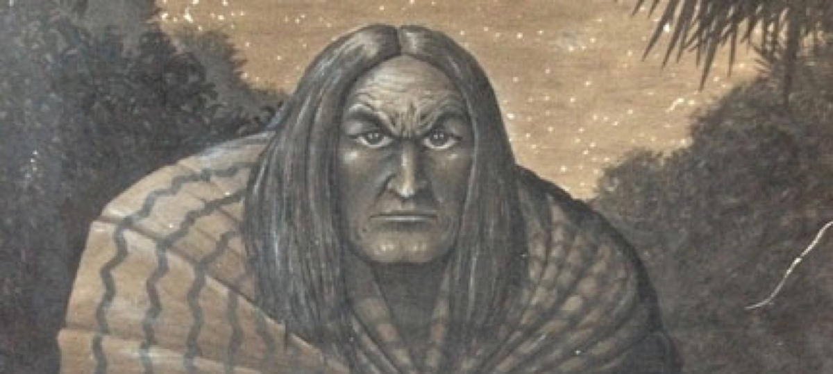 The large painting on board depicts a grim, long-haired man, perhaps a Native American, clutching a blanket around his shoulders under a star dappled sky. We may never know the circumstances of the work’s creation or whom the figure represents but, as it is signed in the lower corner, there is no doubt that it was painted by the man whom R. Crumb called, “A twisted genius”.
