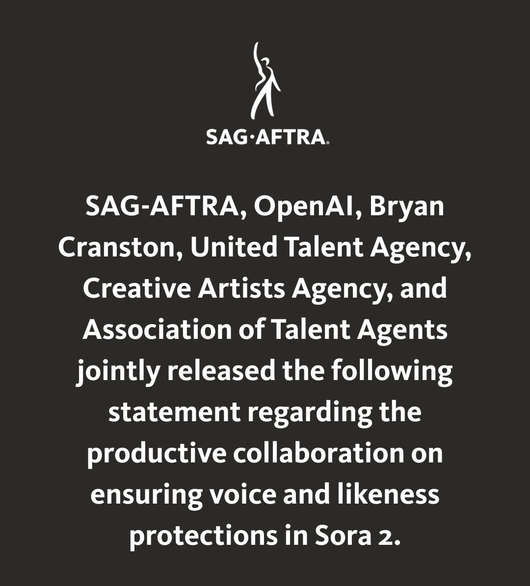 “I was deeply concerned not just for myself, but for all performers whose work and identity can be misused in this way,” Cranston said in a statement. “I am grateful to OpenAI for its policy and for improving its guardrails, and hope that they and all of the companies involved in this work, respect our personal and professional right to manage replication of our voice and likeness.”