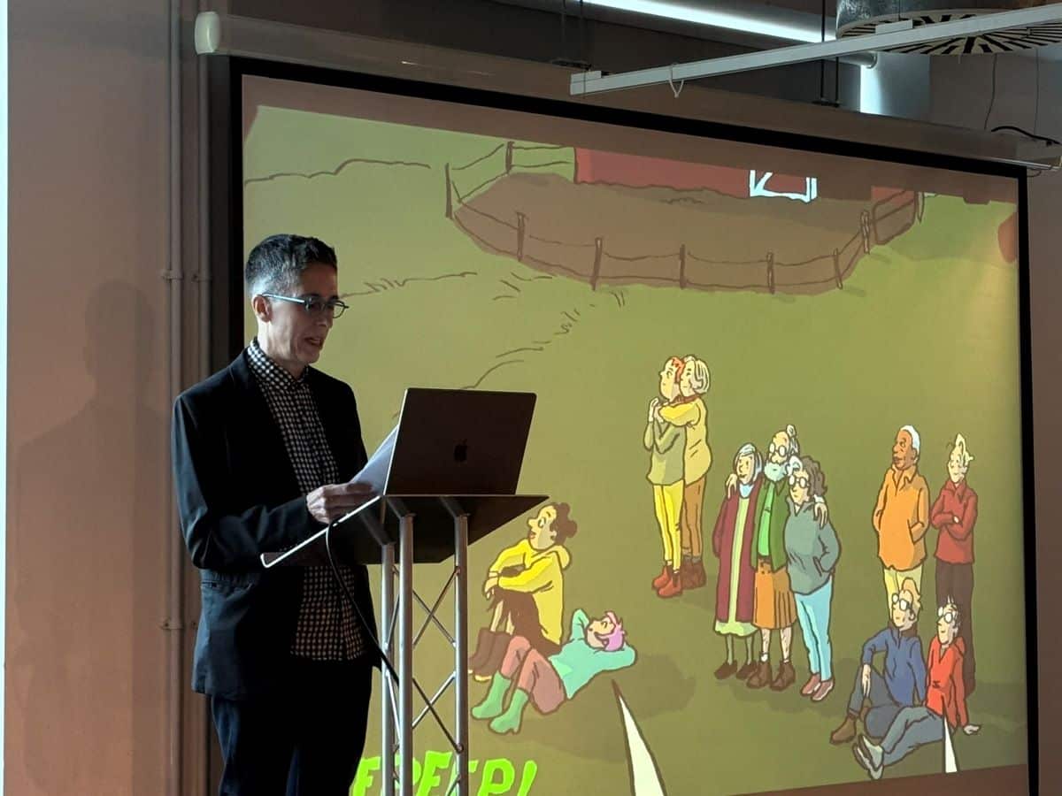 The talk itself was a mix of career overview and the thought processes that underlay Spent, which, according to Bechdel, started as another work of non-fiction before turning into a fictionalised soft-parody of her career and the anxieties of the current political environment in the US. What particularly excited Bechdel was revisiting the cast of her popular longrunning comic strip Dykes to Watch Out For (1983-2008) some 20 years later. Bechdel is already considering a sequel.