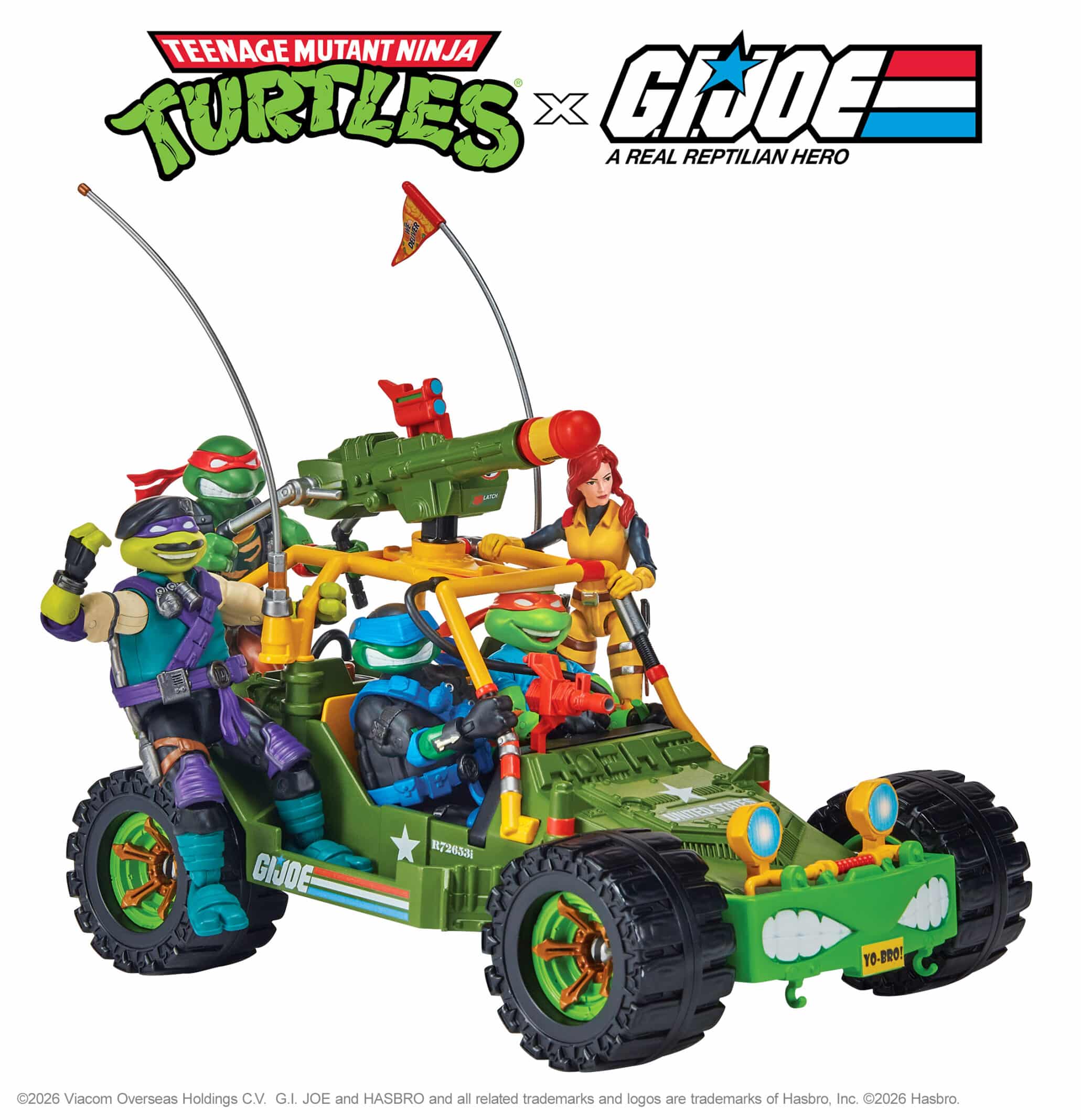 Two of the most iconic and powerful properties in 1980’s action figure history are joining forces for the first time. Paramount’s Teenage Mutant Ninja Turtles and Hasbro’s G.I. JOE, brands that defined a generation of action play, are colliding in an all-new collectible figure mashup that celebrates their shared legacy of heroism, attitude, and larger-than-life adventures! The TMNT x G.I. JOE toy line, including action figures, accessories, and vehicles, will be showcased at Playmates Toys (booth #2303) at the North American International Toy Fair, Javits Center, February 14-17.