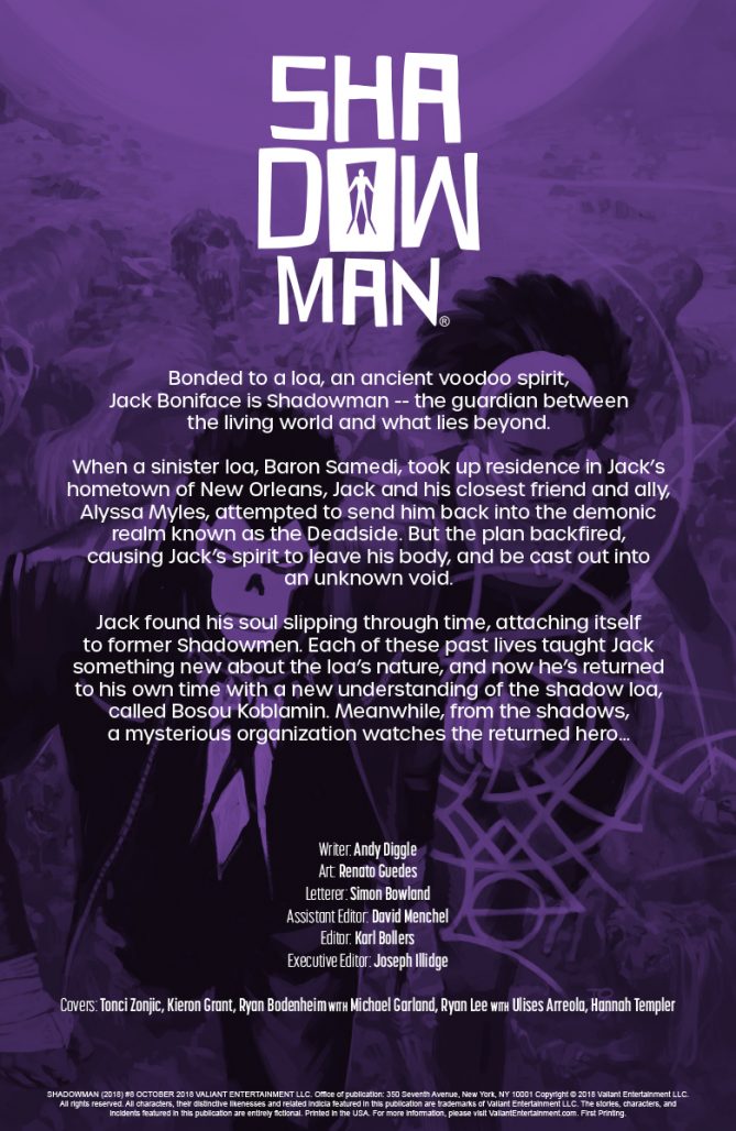 As Shadowman returns to New Orleans with a revelatory new understanding of the immense abilities within himself, he won’t have long to adjust…because a war for control of the ultimate magical artifact – the bones of Master Darque, his old arch-nemesis – is about to erupt out of the underground and into the harsh view of day!