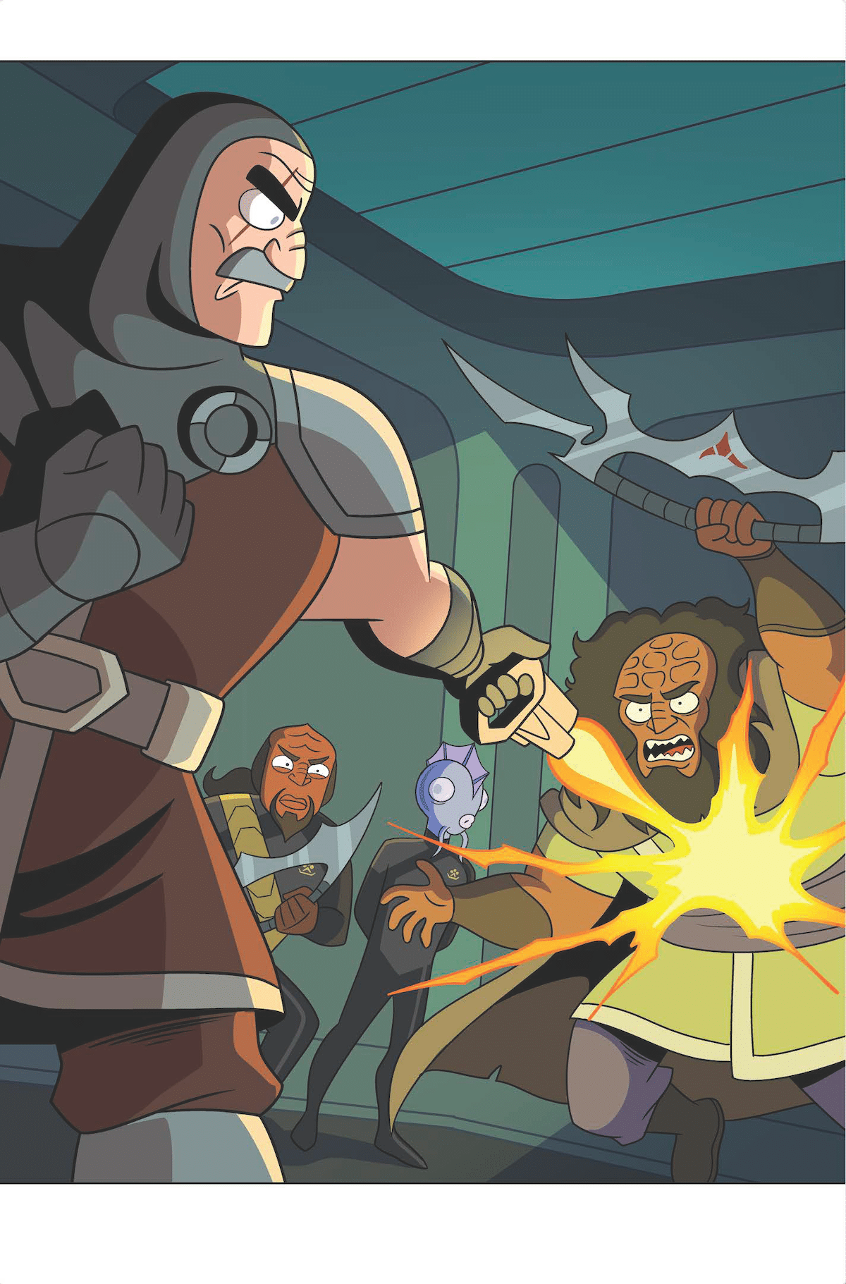 Plus of course, you can expect Clayton Cowles to reliably provide excellent lettering. From dialogue balloons to LCARS screens to every KRAKOOM sound effect, Cowles delivers the goods. And all three creators come together for a final page that will knock your socks off (if you’ve already slipped them back on after they were previously knocked off while reading earlier pages of the issue).