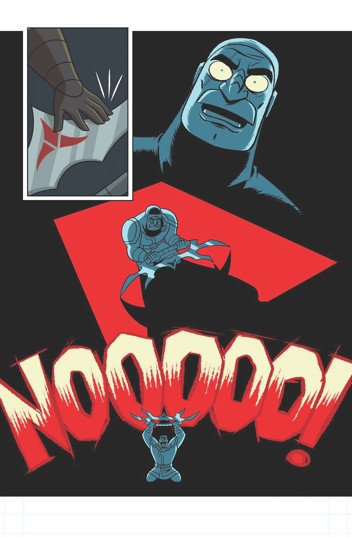 From here, Shaxs embarks on a secret mission, the details of which I will not elaborate on here for spoilers’ sake. But suffice to say, Shaxs is once again pitted against a legion of fascist foot soldiers. And while they may “just be following orders,” Shaxs has a very personal bone to pick with each of them after having been transmogrified into the thing he hates more than anything else: a fascist. And while Shaxs is a softie on the inside, when he goes on a fascist-killing mission, we all know it is bad news for anyone on the side of fascism.
