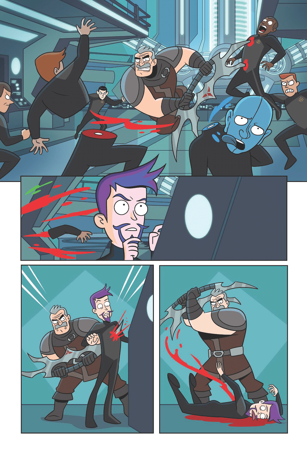 And after writing ten issues of Star Trek: Lower Decks, Shaxs’ Best Day and the graphic novel Star Trek: Lower Decks: Warp Your Own Way, it’s no surprise Ryan North has the comedic Franchise comic script down pat. Like his preceding work, Shaxs’ Worst Day has a nice balance of comedy, action, Star Trek references and weird sci-fi ideas. As usual, his bottom-of-the-page notes add another comedic layer to the issue, with a couple being all-time-great examples of this characteristic trope. And I also spotted a personal reference in a certain ship’s name, which I will avoid specifically mentioning but which I wholeheartedly enjoyed.