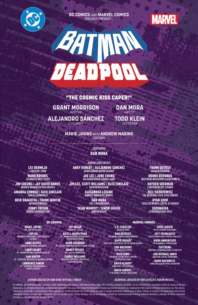 Batman and Deadpool in “The Cosmic Kiss Caper!” by Grant Morrison, Dan Mora, Alejandro Sanchez, and Todd Klein