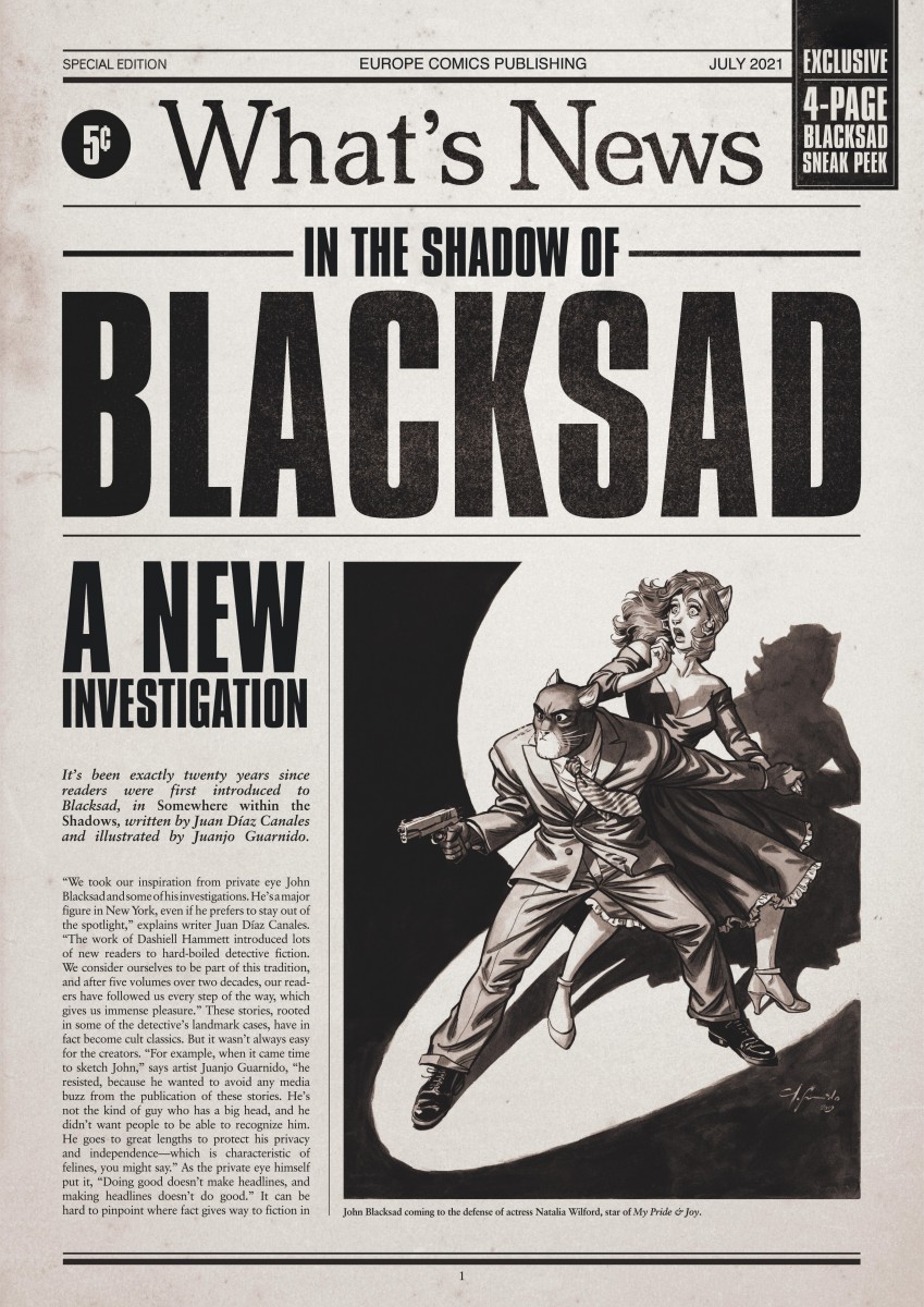 You can buy a copy of “What’s News” for a mere 2,49€ – and if you’re a fan of Blacksad — or just great comics art — you will absolutely adore this English-language tribute to the character and his world. It’s also a sign of the increased global reach of comics that such a detailed tribute to the character has been released in English.