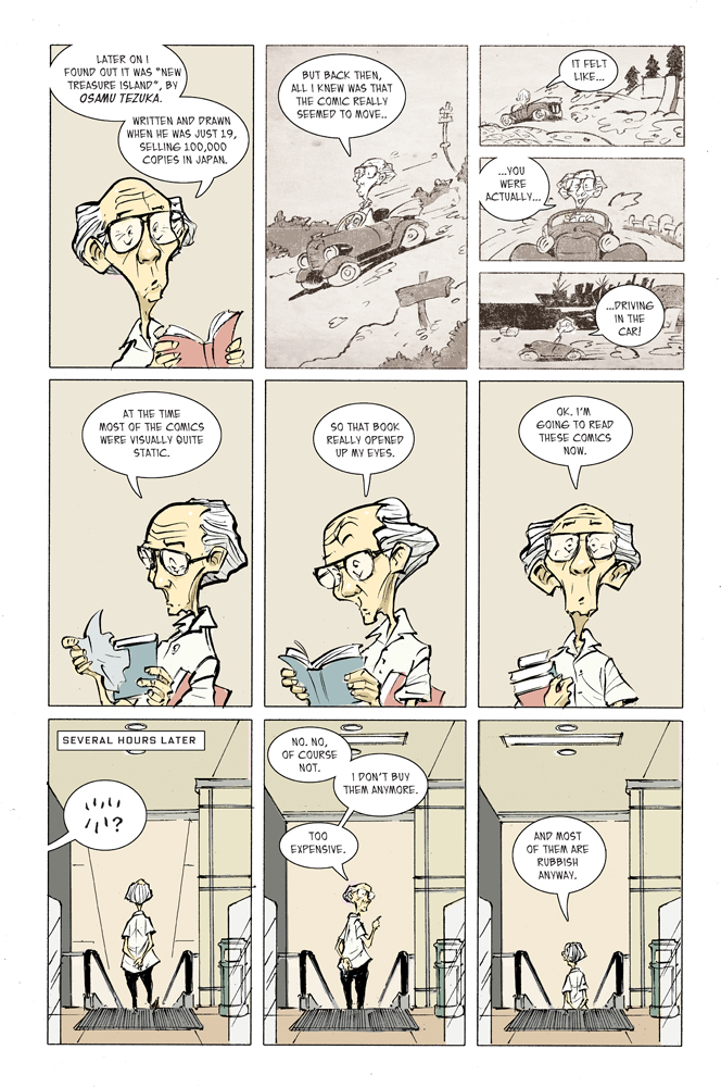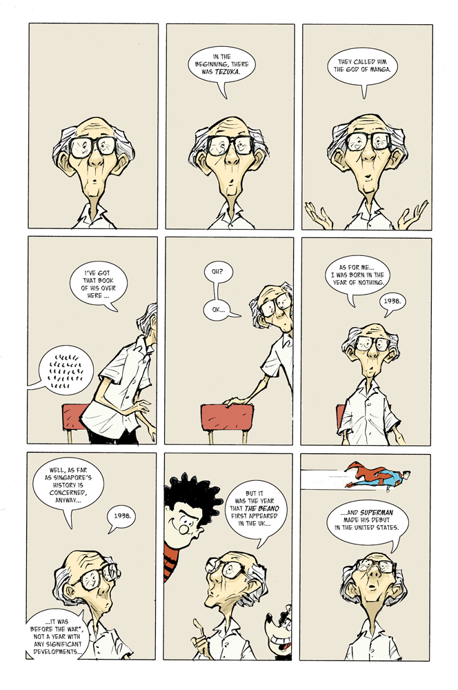 Due for publication later in the year, the more I see of The Art of Charlie Chan Hock Chye, the more it looks like it’s going to be Liew’s magnum opus (to date). He’s taken a multi-layered approach to the text, rather like The Photographer, not only telling Hock Chye’s life story in comic form, but incorporating pages of the comics he produced into the narrative, along with photographs, as well as switching between a mixture of art styles. Liew’s posted another updated, extensive preview at his blog, which you should really go check out, although I couldn’t resist posting some of the pages here- they look so good.