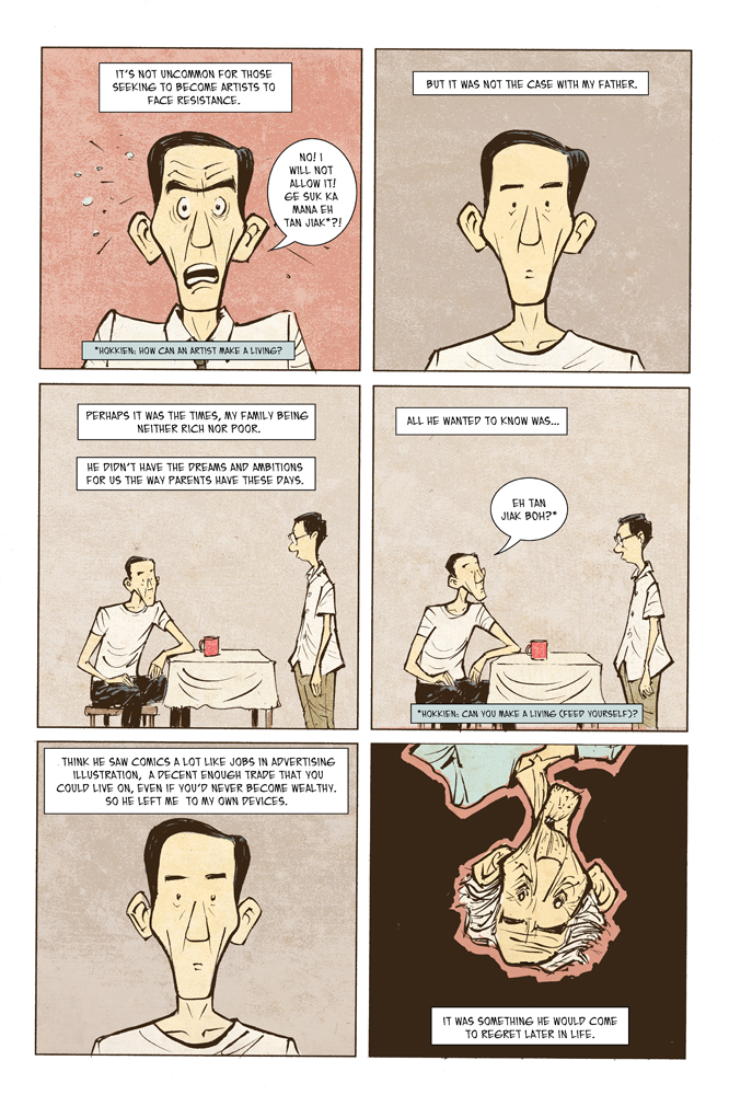 Liew began work on the the Charlie Chan biography when Singaporean publishers, Epigram Books, introduced their new comics line with the simultaneous release of 4 titles: Ten Sticks and One Rice, Scengapore, Monsters, Miracles and Mayonnaise and The Girl Under the Bed. The venture has been pretty successful, with the books critically well-received in addition to Drewscape’s Monsters gaining an Eisner nomination, and Ten Sticks winning the bronze International Manga award.
