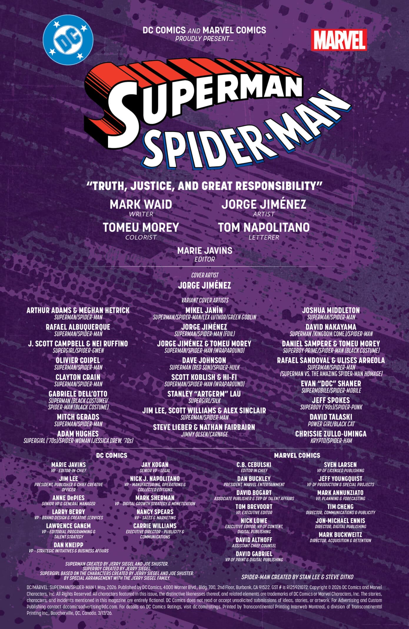 As previously announced, the Superman/Spider-Man one-shot will headline a main story from writer Mark Waid and Jorge Jiménez: