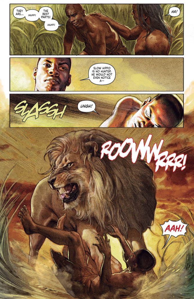 His soul cast adrift in the astral void, “DEAD AND GONE” has led Jack Boniface across the centuries in search of the origin of the Shadowman’s curse – and now it’s taking him all the way back to the beginning of mankind! Standing beside his ancestors in the kill-or-be-killed world of primordial Africa, Jack is about to awaken something ancient, hungry, inhuman…and, as darkness descends, the long-hidden face of the Shadowman loa will be known!
