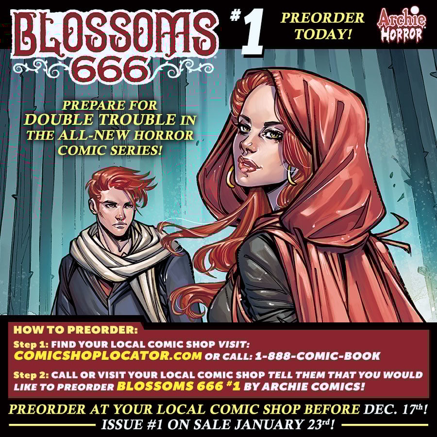 These Archie Horror books, a line that includes Jughead: The Hunger and Vampironica, have been a tremendous amount of fun. Now it’s the Blossoms turn to play. Check out information about pre-ordering a mini-comic, as well as a preview for the first issue (final orders are due today), below: