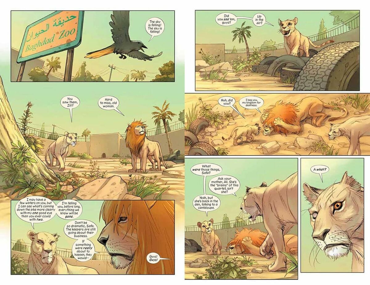 The series is a fictional take rooted in a true story. After the United States’ invasion of Iraq in 2003, four lions escaped from the Baghdad Zoo. The fictionalized version gives each lion the ability to talk as the story progresses.