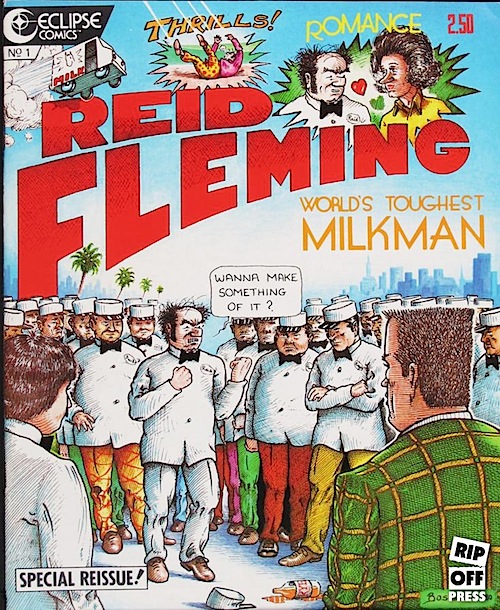 The other day we were joking about 80s comics weirdos/iconoclasts/content creators like Bob Burden and Steve Lafler — post-underground cartoonists who turned out sizable, notable bodies of work that appeared mostly in serial form, mostly based around very strong characters. It’s a format that has all but vanished. But here’s another near legendary practitioner of the same, Canadian legend David Boswell, creator of Reid Fleming, World’s Toughest Milkman. Boswell has just put all of Fleming’s adventures online in a pay-what-you-wish format, which most people will take to be free, but be a good sport and drop a few bucks, won’t you?