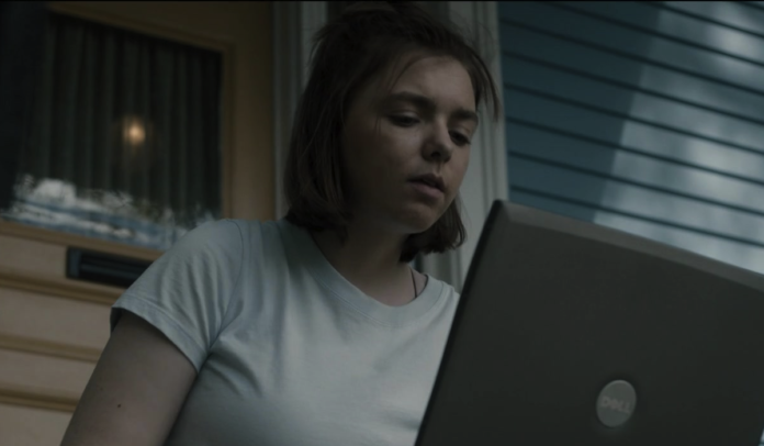 After the opening credits, we briefly return to 2019, where Joy is sitting on the back porch of Nadia’s house and reading The Ravening Angel on a laptop. As Joy reads the text aloud, the story flashes back to teenage Annie as she enters the text into the computer. Next, we see her reading pages of the novel-in-progress aloud to Carl as he does chores in the backyard, and in spite of some stumbling, her abilities have improved significantly.