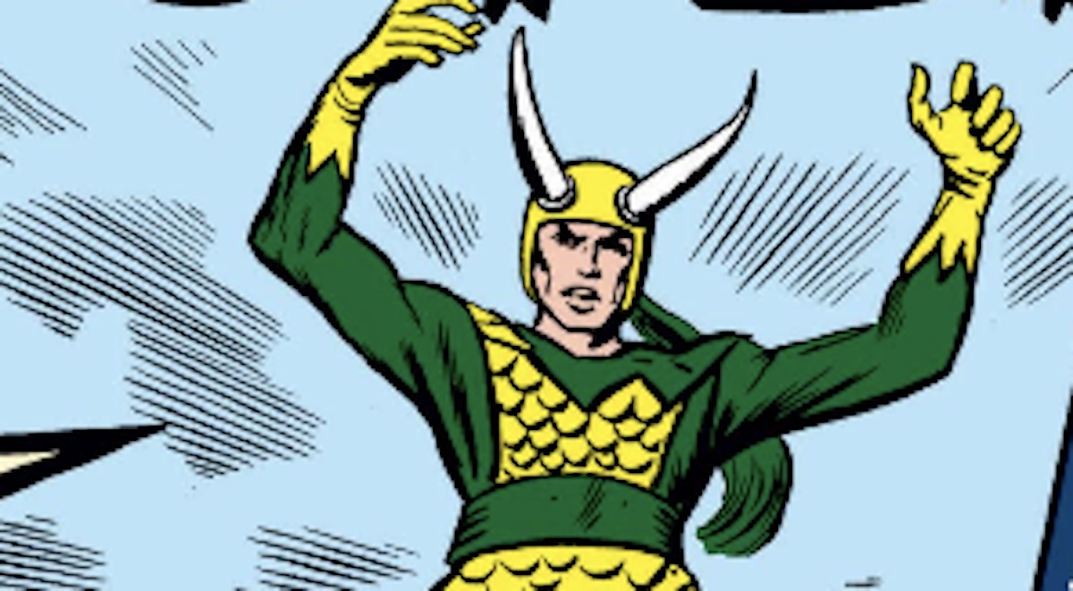 Until, that is, Natalie Holt’s continually incredible score alerts us that a new contender has entered the arena. Soon, we see Classic Loki, adopting the pose of Loki on the cover of Journey of Mystery #85 (1962) by Stan Lee, Larry Lieber, Jack Kirby, Dick Ayers, Stan Goldberg, and Artie Simek: the first appearance of Loki!