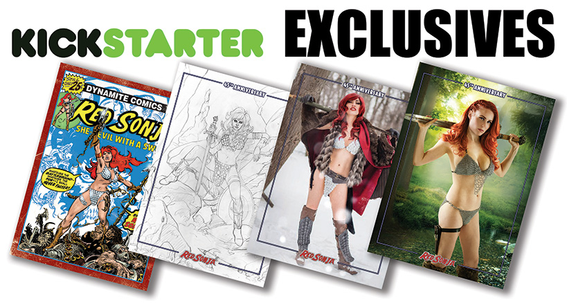 The Dynamite “Red Sonja 45th Anniversary Deluxe Ultra-Premium Trading Cards” Kickstarter campaign is live now, and can be found by visiting: