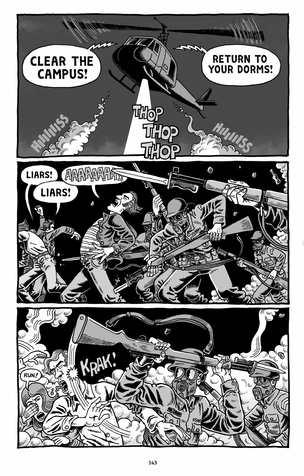 One of the most eagerly awaited graphic novels of the spring was Kent State: Four Dead in Ohio, by Derf Backderf (Abrams ComicArts). It’s awaited with good reason: the author of My Friend Dahmer lays out the events of May 4th, 1970 in stunning sociological and historical detail, telling the story of four student protesters who were shot by the National Guard. It was a shocking event that helped a divided nation take stock of just why it was fighting.
