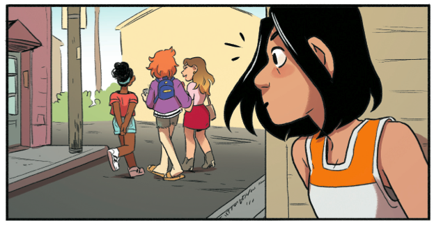Soon, Morgan and Keltie have fallen into what might fairly be characterized as an archetypical summer romance: spending all their time together, avoiding everyone else in favor of one another, and keeping secrets. What’s great about this aspect of the narrative is that both the good and the bad are included: while Morgan may be swept away with the tides of love, we also see her ignoring her friends.