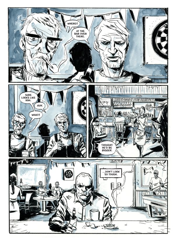 Unexpectedly, Roughneck is a work of hope rather than despair — or, rather, the relationship between the two. The intensity of hope, and the elation of achieving its goals, are perhaps relational to the lows of despair. The lower despair brings you, the higher redemption makes you feel. In that way, hope can perhaps be compared to the addictions of both Derek and Beth, but it’s one that strives to pull you out of the hole that typical addictions only trick you into thinking you are escaping. Lemire’s understanding of this, and his ability to connect the landscape of the body with the terrain of your emotions, shows what a line any of us can walk, and how perception can be a self-fulfilling prophecy.