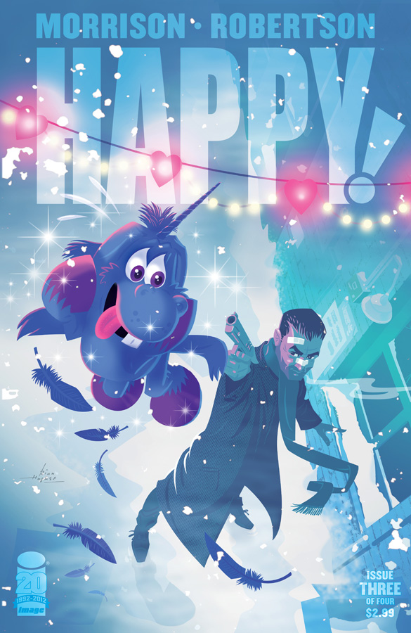 The concluding issue of Grant Morrison and Darick Robertson’s Happy! has finally made its way to the shelves, and has seemingly divided critics right down the middle. It’s perhaps no surprise to anyone who has seen my Happy earrings that I loved it, but let’s have a proper look…