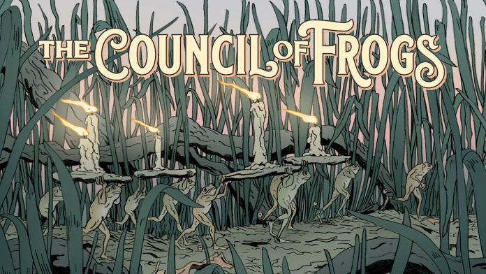 To be honest, it doesn’t feel like a frog problem. There are ecological considerations in The Council of Frogs, but its real concern is with parenthood. The frogs that form the council are born from the magic inside a bog-corpse. Mom was the swamp and Dad is a Lich. The wizard, from candlelit grave, strives to fulfill his responsibility as a guardian. Though they don’t speak, his frog family all act like little people. Our hero is an amphibian, yes, but first an adventurer.