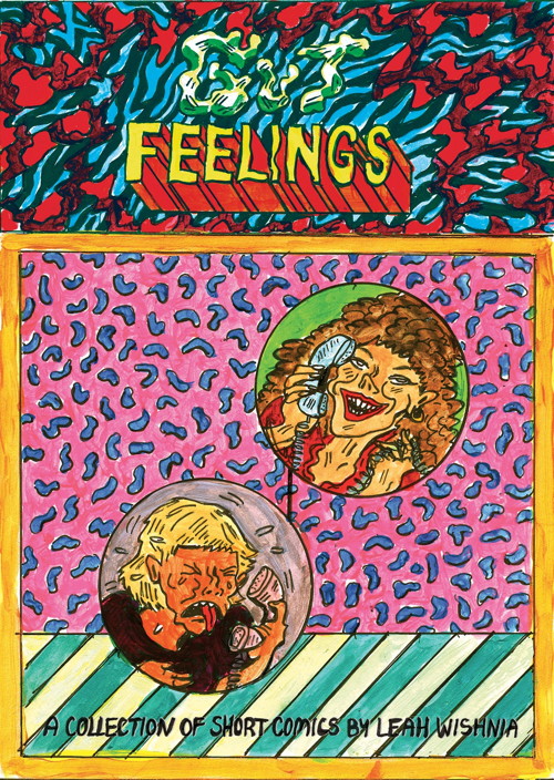 On the surface, Leah Wishnia’s anthology GUT FEELINGS visually reads as a tornado of frenetic and (at times) grotesque imagery, brimming with a stream of both rambunctious and tortured characters who are pitched in a mosaic of revolving hallucinogenic experience. It could easily be shelved amongst the vast anthologies from fellow young underground cartoonists, as her rebelliously aggressive style falls in line with a lot of the anarchistic, counterculture-influenced artwork coming from many of her peers. However, to offer such a conclusive generalization would be a naïve and haphazard judgement, ignoring Wishnia as the true erudite artist that she is shaping out to be. A vocal promotor for the use of comics as means to critique society in all its forms, Wishnia is vibrantly aware and entirely unapologetic of the subjects she tackles in GUT FEELINGS, her artistic voice echoing a resounding deference to the idea that “the political is personal.” A combination of memoir, dreamlike make-believe, and penetratingly raw humor, her collection introduces Wishnia as a promising cartoonist and storyteller, paving a future for budding artists to create material that is richly thought-provoking and resisting of the status quo.