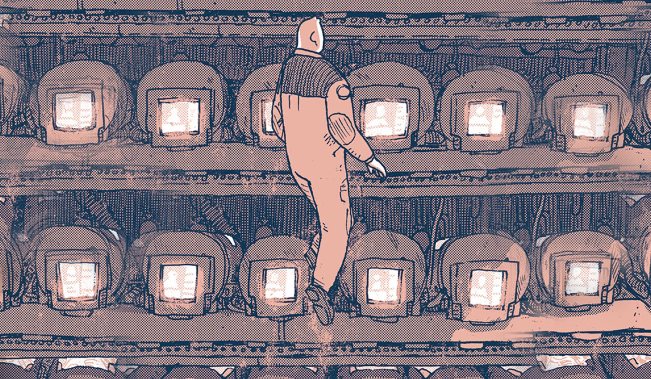 The coloring is just as cerebral, half solid colors to add depth- an offset printing effect that doesn’t clash with the rawness of the illustration, a complimentary flatness. There’s also colors done as Ben Day dots, giving the negative space texture without shaping it the way the solid coloring does. Some panels layer dots on dots on solids so that the shadow on a cheek, the pallor of a face, and the impression made in a pillowcase are all discernibly different. This whole book is layers and layers of Smith’s total devotion.