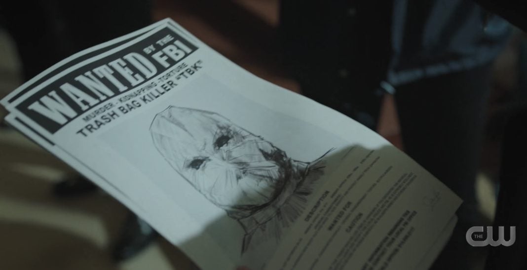 The Trash Bag Killer leads Betty on a wild goose chase to skid row, where he pays off a homeless guy to wear his mask and give Betty a message that leads to Betty finding more and more pieces of Glen nearby. She reveals to Archie later that one of those pieces was Glen’s head, so RIP Glen.