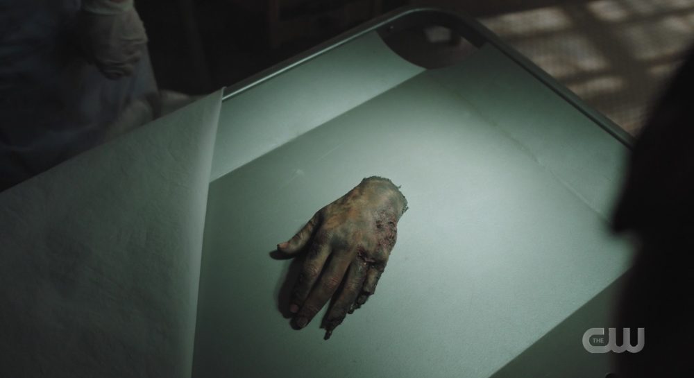 Ethel offers Jughead a reward for his bravery. She whispers the identity of the Gargoyle King in his ear and he responds with “But that’s impossible?” Betty calls Jughead. He tells her that Jason Blossom is the Gargoyle King! Jason Blossom! But he’s dead! Betty is sneaking organs out of the fridge during this phone call. Betty shows the organ box to Cheryl, who isn’t buying it. But when Betty shows her an actual kidney, Cheryl is shocked back to reality. Side note: Opening that cooler like that can’t be sanitary or sterile. Side side note: is that Kevin’s kidney? Toni is about to have “the procedure” done. They have to save her!